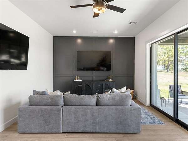 Stunning Lakefront Oasis on Over 2 Acres in Gated Community.Nestled in the heart of a gated community,this lakefront property redefines luxury living. Situated on over 2 sprawling acres,this fully furnished home boasts awe-inspiring lake views and offers an exquisite blend of comfort and opulence.Prime Lakefront Location:This property is a waterfront paradise, offering direct access to the tranquil lake, perfect for water sports and leisurely boat rides.Resort-Style Amenities: Residents enjoy access to a range of resort-style amenities,including a sparkling pool, scenic walking trails, and a well-maintained pickleball court.Adequate Accommodation: With 2 king beds, 4 queen beds, and an additional 6 bunk beds in a separate bunk house equipped with a kitchenette, this home accommodates family and friends with ease.Modern Appliances: The main house features top-of-the-line commercial appliances, while a supplementary refrigerator in the pantry near the outdoor kitchen ensures that every culinary need is met.Convenience at Your Fingertips: Two stackable washer and dryer units simplify laundry tasks, and a bonus room with a 20-foot sliding door and two TVs provides a perfect entertainment space.Entertainment Galore: For those who crave entertainment, a hot tub with an integrated TV awaits. Each bedroom features its own TV, & a Sonos sound system permeates every corner of the property. Rest easy with comprehensive security features, including cameras and an alarm system, ensuring peace of mind for you and your loved ones.For water enthusiasts, a boat slip is available for purchase along with the home, making it convenient to explore the lake at your leisure.This meticulously designed turnkey property is the epitome of elegance and comfort, offering an exceptional opportunity for both personal retreat and investment. Experience the perfect blend of natural beauty and modern luxury in this lakefront sanctuary.Don't miss the chance to own this captivating piece of paradise.
