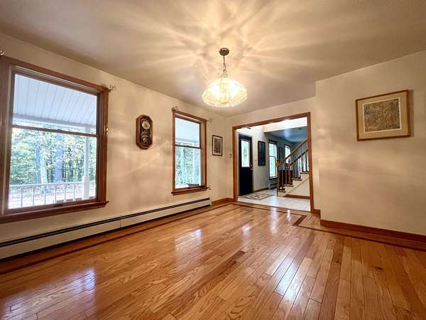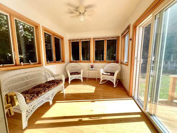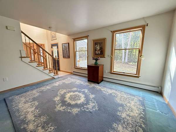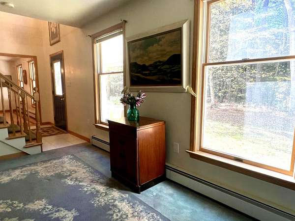Is complete privacy important to you? How does this beautiful 3-bedroom, 3 bath home with a two-car garage on 12+ acres sound? This attractive property is located in Vernon's desirable "Central Park Estates" neighborhood amongst other well-kept homes and a mile or so to the beloved Vernon Recreation Center. Just off of a quiet, side-road cul-de-sac, enter the property down the driveway through the pretty woods to the secluded home handsomely situated amongst the evergreen, maple and birch trees and alongside a long stone border wall. You'll enter the home off of the covered front porch and into the mudroom entryway. In this area, you'll be happy to know there is a 1st floor laundry area and lots of closet space. The 1st floor features an open-concept eat-in kitchen with direct access to the light-filled 3+season sunroom that takes you to the back deck. The living room is off the kitchen with a wood burning fireplace and attractive wood flooring. Around the corner- a lovely dining room (w/wood floor), and a cozy den. The 1st floor has a "bonus" room adjacent to the kitchen- a mostly finished space that could be utilized as a 1st floor bedroom, office/exercise or playroom. 2nd floor: The large primary bedroom suite comes with a walk-in closet and a full bathroom. There are two other good-sized bedrooms that share another full bath. The basement is poured concrete w/ walk-up access to interior, or the garage. Equipped w/ a wood-stove and ton of space for storage, a Buderus boiler, and 200 AMP breaker box. The immediate yard is level and low maintenance with an additional storage shed. The remainder of the acreage is wooded with impressive stone outcroppings, hiking and snowshoeing areas and some sloping wetland where wildlife roam. An abundance of nature at your fingertips. All of this and the convenience of only 10 minutes to Brattleboro. Very close to Bernardston, MA. Great community and school. School choice for grades 7-12. No zoning. Showings start: March 29th.