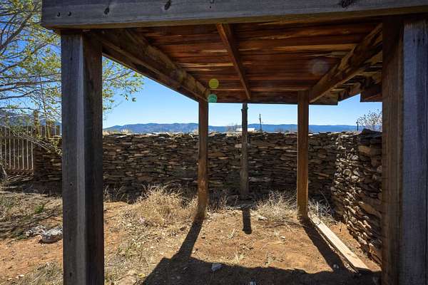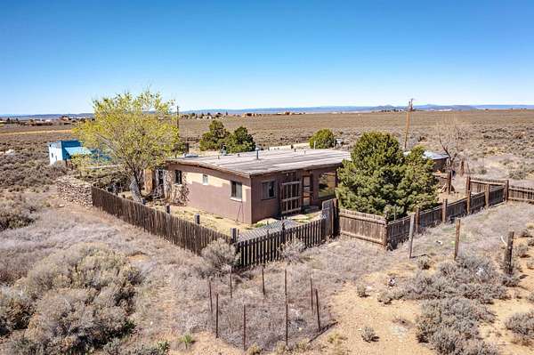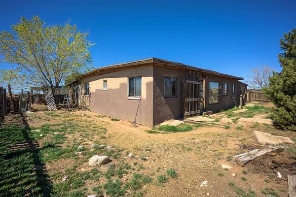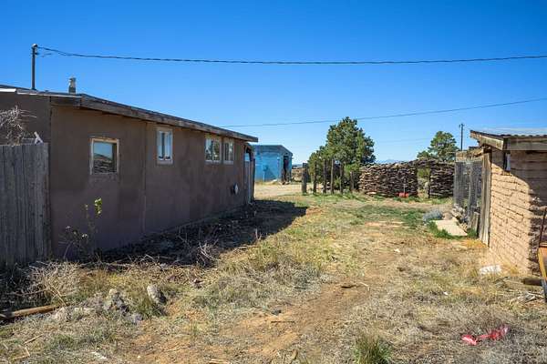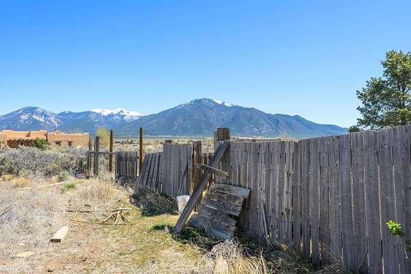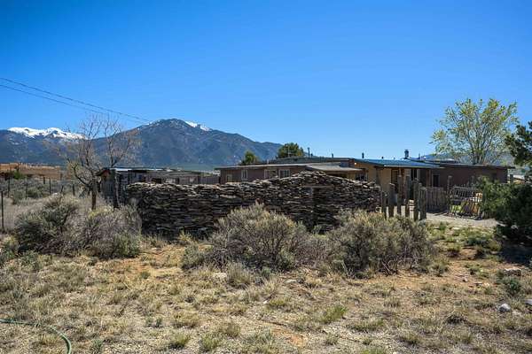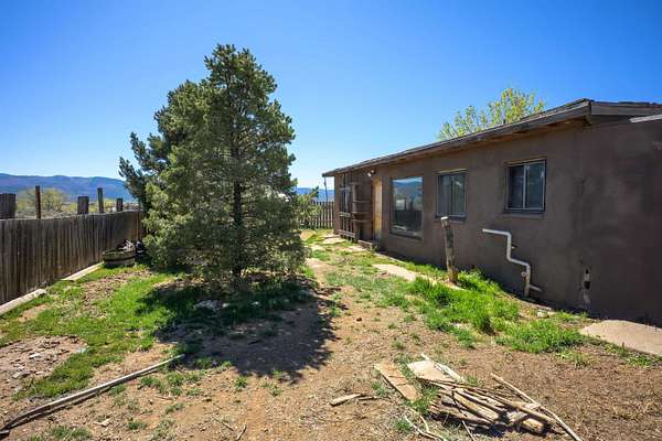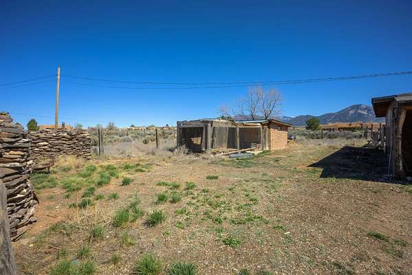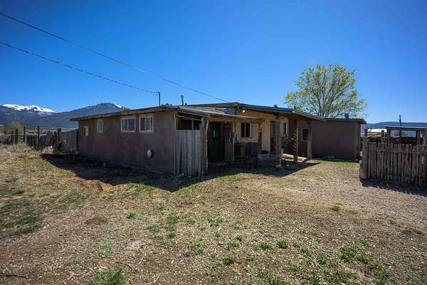 Est $1,206/moGorgeous lot with tons of potential! Just minutes to town with panoramic mountain views, mature trees, Acequia irrigation ditch, hand built dry stack stone wall, large garage/ workshop, adobe chicken coop. The house is a true fixer upper, and is sold AS-IS. Or... bring your imagination and enthusiasm, start fresh, and build your dream home!