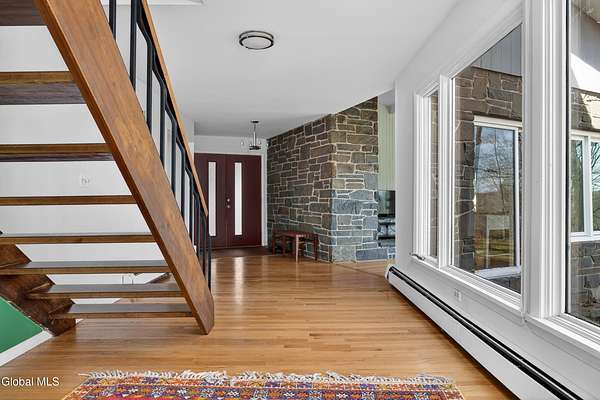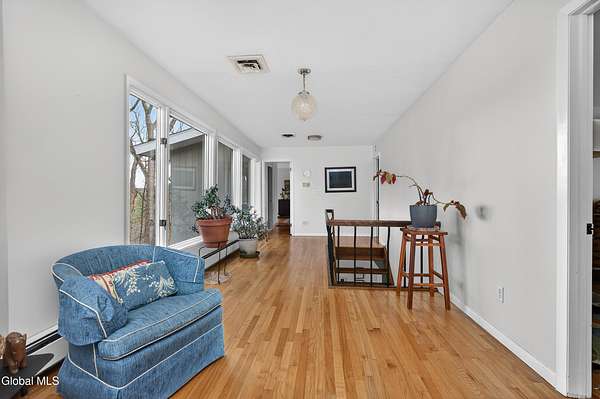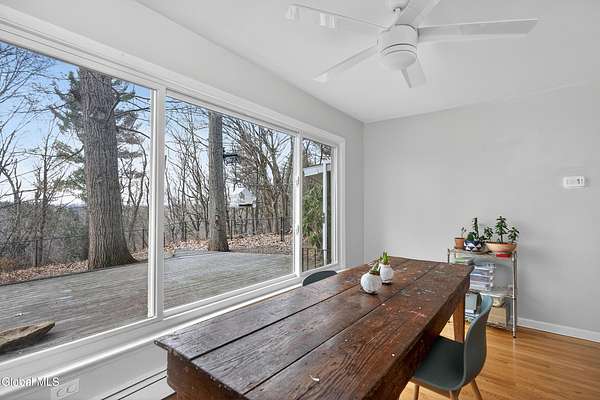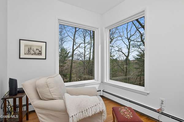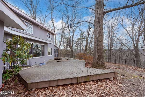 The beauty of nature is the backdrop of this very special home. Expansive windows throughout fill the interior with abundant natural light and offer views of nature from every room. Located on a 2.5 acre lot with plenty of privacy this home is move in ready with a new roof in 2022 and a new 5 zone boiler in 2026. Many windows were replaced in 2023. Large eat in kitchen that is great for entertaing. All bedrooms offer a full bath and primary bedroom full bath was recently remodeled with marble features. The private backyard has a large deck for entertaining and is fully fenced in for your family and pets. There are hardwood floors in every room. Central A/C throughout the house. Located at the end of a quiet street and just minutes from all the shopping, schools and entertainment that Troy has to offer. Two parcels of land are included.