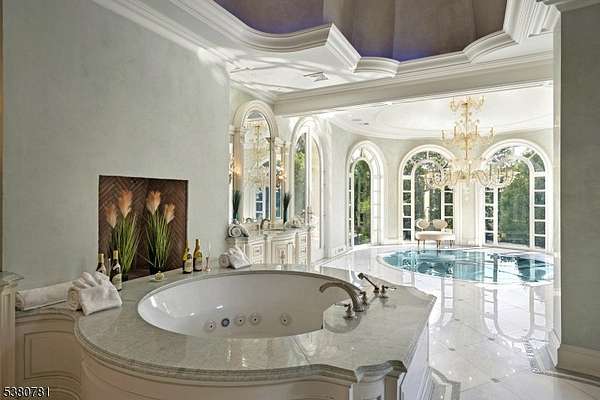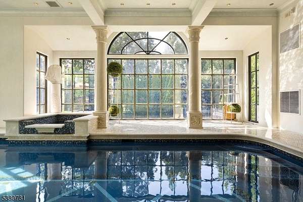 In Alpine's most coveted enclave, where prestige meets perfection, 31 Rio Vista Drive rises as a rare statement of architectural artistry and uncompromising luxury. Set on two manicured acres behind stately gates, this 2017-built estate spans nearly 21,000 sq ft and commands attention with a dramatic bridge marble staircase, custom wood floors, and heated marble underfoot. From the private elevator connecting the basement to the roof deck, to the state-of-the-art custom kitchen, every element is meticulously crafted. Venetian plaster walls add timeless texture, while nine fireplaces, custom closets, and spa - inspired baths offer unmatched comfort. More than nine A/C units and solar panels ensure modern efficiency without sacrificing elegance.
