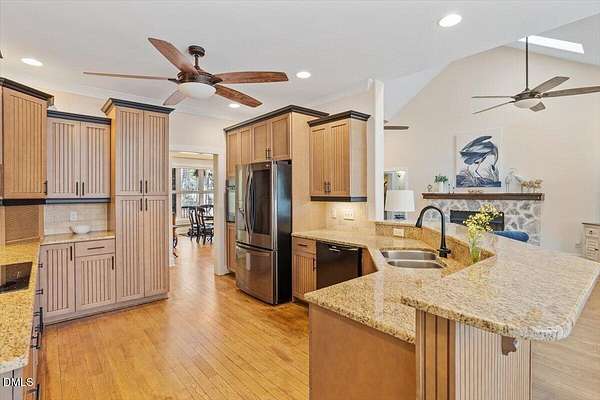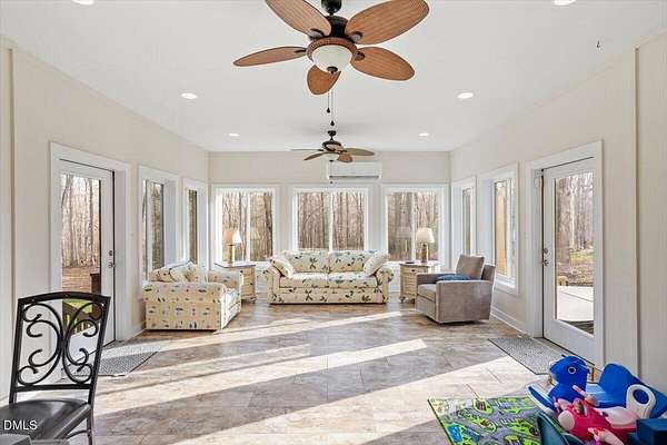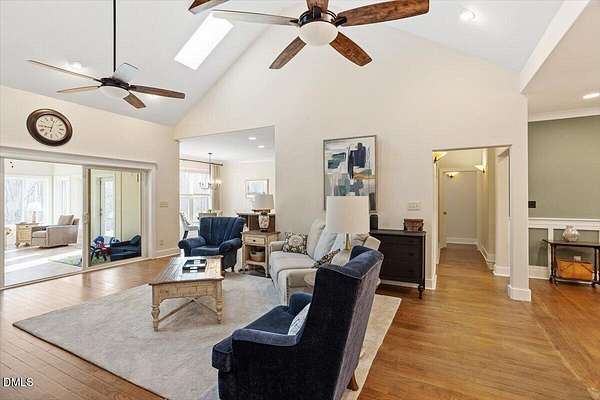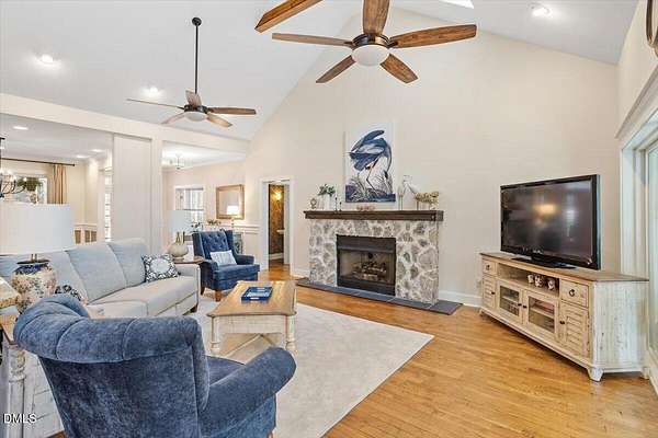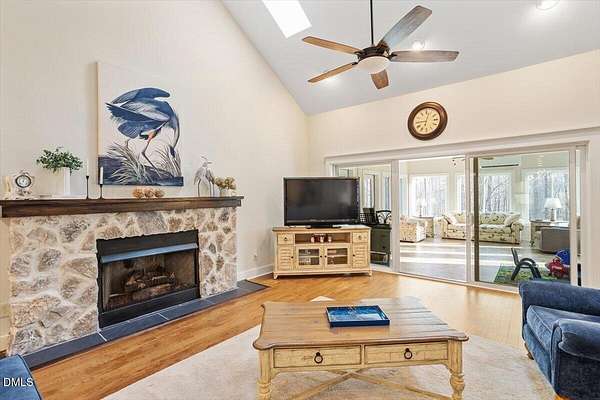 Welcome home to this extensively renovated 3BR, 2.5BA ranch on 2.47 private acres in Flat River Ridge, a quiet cul-de-sac community with river access and just a $300/yr HOA. With over $100K in 2025 upgrades, this 2927 sqft single-level home offers soaring ceilings, hardwoods throughout much of the main living area and new carpet in the bedrooms, oversized windows, skylights, a whitewashed stone fireplace, enclosed porch, dedicated office, and main-level laundry. The spacious primary suite features heated bath floors, a roll-in shower, and wide doorways. Outside enjoy a rebuilt deck, hot tub, fresh landscaping, 2-car garage, and huge floored attic with permanent stairs. Turnkey, accessible, and rare, with camper or boat storage allowed behind a privacy fence.