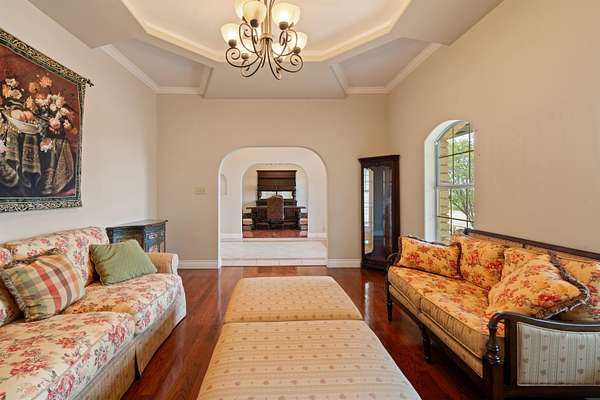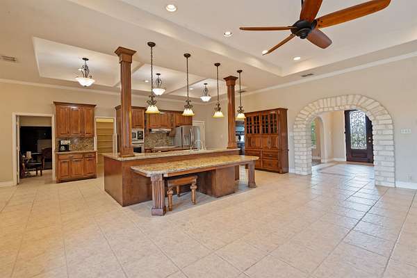 Rent these 6 acres plus for 3000.00 a month , this 5-bedroom, 5.5-bath home offers more than 5,000 square feet of living space, a full Austin stone exterior, and a 3-car garage. Ornate double front doors welcome you into a grand foyer, flanked by a formal living room and a formal dining room. A stone archway leads into a spacious den with a built-in stone media center and matching fireplace, seamlessly opening to the chef's kitchen. The kitchen features an oversized island with extended bar seating, abundant cabinetry, a massive walk-in pantry, and a private office just off the breakfast nook. The luxurious primary suite includes a private sitting area, a second office or flex room, dual walk-in closets, and a spa-like bath with double vanities, a walk-in shower, and a soaking tub. Hardwood and tile flooring run throughout the home, adding warmth and style. A separate guest suite with a full bath is located off the garage.