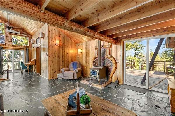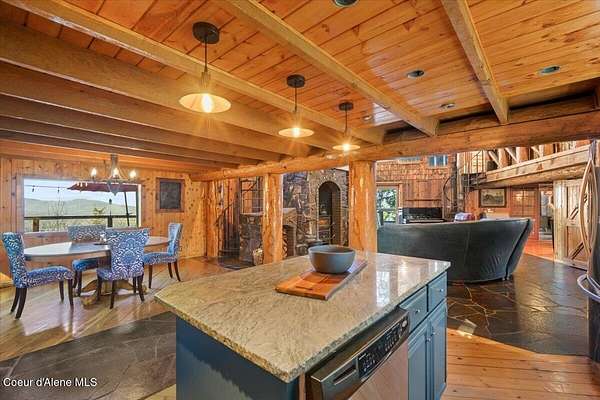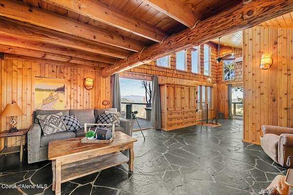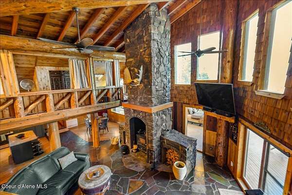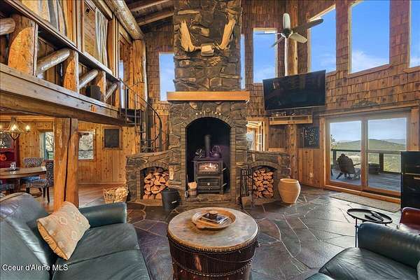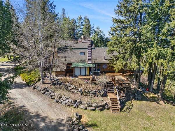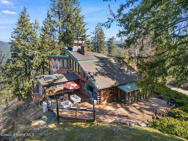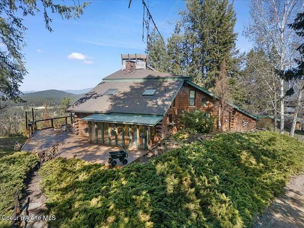Set on 9.81 private acres with rare double lake views of Fernan Lake and Lake Coeur d'Alene, this handcrafted retreat is a true work of art. Rich log construction and custom stonework create a warm, organic feel, while soaring windows draw in natural light and frame the water and mountain vistas beyond. Thoughtfully designed lofts add character and dimension, offering cozy, elevated spaces to relax or create. Every detail speaks to craftsmanship and intention, blending rustic beauty with timeless design. Wake up to peaceful sunrises over the water, spend your days hiking, ATVing, or enjoying nearby recreation, and end with evening sunsets and cocktails overlooking the lakes. Outside, a large garden and open acreage invite a lifestyle rooted in nature--room to roam, grow, and unwind. A rare opportunity to own a home that feels as inspired as its surroundings.