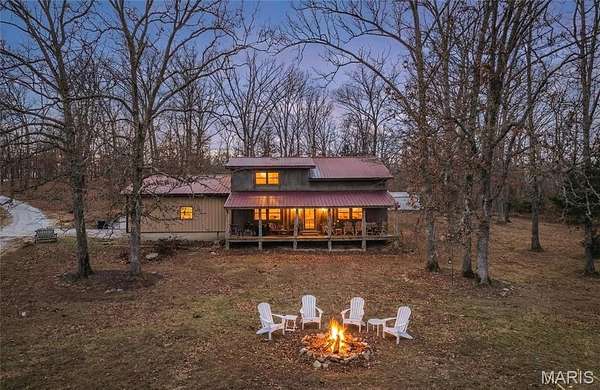 Lazy H Ranch, a rare opportunity to own 132 private acres just three miles south of Steelville, Missouri. Property offers the perfect mix of mature timber, open pasture, trails, and abundant wildlife with excellent deer hunting. Water is a standout with a stocked 2.5-acre lake with a dock perfect for fishing, a swim or put your kayak or small boat in for a float. Plus two additional ponds, and seasonal creeks that enhances both beauty and function. A private drive ensures complete seclusion and privacy. The home is a 3-bedroom, 2-bath barndominium with an open-concept floor plan, 1.5 story, designed for comfort and easy living. The home includes an oversized garage, perfect for equipment, recreational vehicles, or workshop space. The deep front porch expands the length of the house and offers exceptional porch-sitting with peaceful views of the surrounding land. Located close to town conveniences while feeling worlds away, Lazy H Ranch offers a rare combination of privacy, accessibility, and natural beauty. Properties with this acreage, water, and improvements — this close to Steelville — are increasingly hard to find. Duplicate listing# 26001290