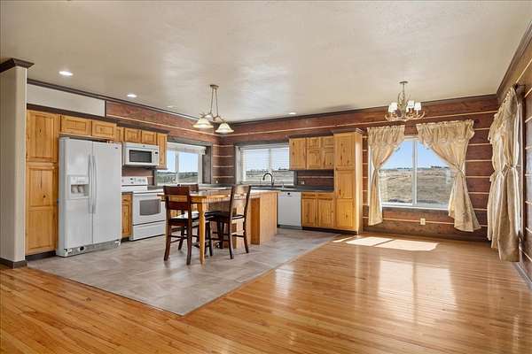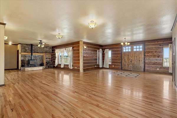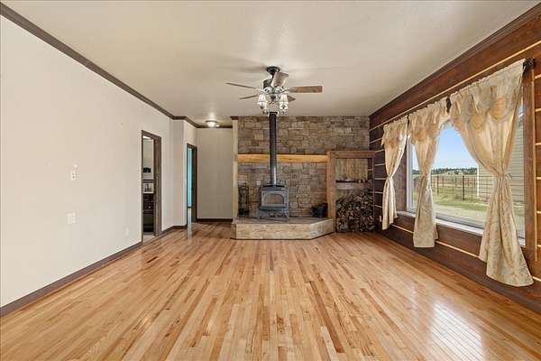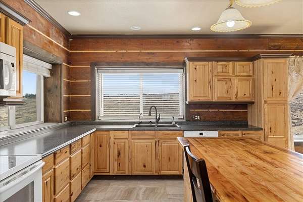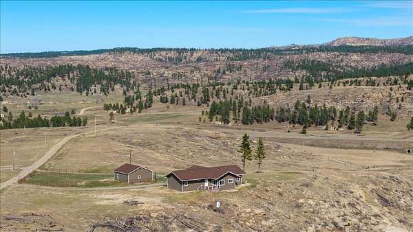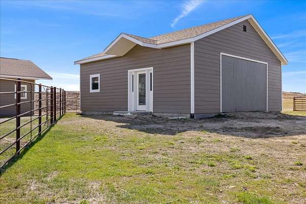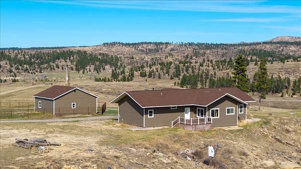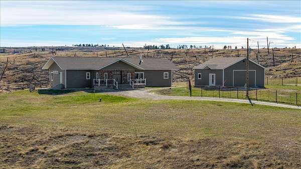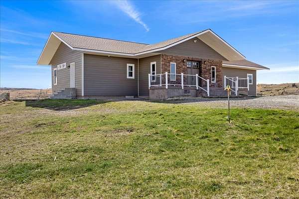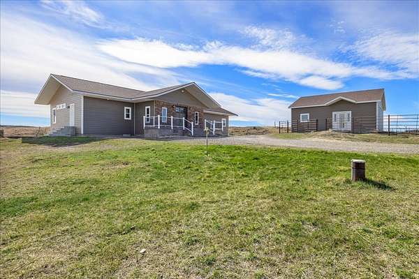 This custom built home sits on a little over 16 acres, it is located just 30 minutes from Billings and 15 minutes from Roundup. This spacious home features an open concept with hardwood floors and travertine through-out, has a beautiful wood burning stove that heats the entire house, custom light fixtures, primary suite includes a tiled shower w/ custom glass shower door & large walk-in closet. 9 foot ceilings, 8 foot double hung entryway door, stained and stamped concrete accents, wheelchair ramp for easier access, new hardboard siding(2024), built out of 8 inch thick insulated concrete forms for increased fire resistant construction. Brand new 30 x 30 shop built in 2025 that is ready to add an overhead garage door to. This property provides space, privacy & peaceful country living.