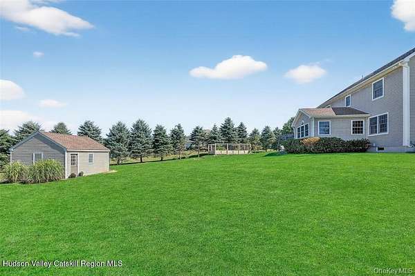 Welcome to 31 Trapps View Farm Road, a beautiful colonial-style home delightfully nestled on nearly two acres in Gardiner with those incredibly sought after peekaboo views of the Ridge. Built in 2004 and lovingly maintained, this three bedroom, two and a half bathroom home has about 2,240 square feet of living space, offering plenty of room for everyone to feel comfortable. From the moment you pull into the driveway, you're greeted with wide open views of the surrounding countryside, giving the home a peaceful, welcoming feel. Inside, the layout is bright and inviting. Hardwood floors run throughout the main level, and the kitchen with generous space for cooking, gathering, and sharing meals. The living area has a cozy fireplace that makes it perfect for relaxing evenings or hosting friends and family and the light kissed sunroom is where you will find yourself enjoying peace. Upstairs, the bedrooms are spacious and comfortable, providing a quiet place to rest at the end of the day. You will also find an extra room that offers the possibilities of whatever you may need an extra room for. The outdoor space is just as special, with a large patio for summer barbecues, morning coffee, or watching the sunset over the ridge. A versatile two-story outbuilding with a garage-style entry adds extra space for hobbies, projects, or storage. The property also offers a delightful enclosed garden space for all your growing needs. With central air, efficient heating, a standby whole house generator, and everything in excellent condition, this home is truly move-in ready. The unfinished basement offers a clean space for copious amounts of storage, laundry and housing the mechanicals of the home. Whether you're looking for a full-time home or a weekend getaway, this home combines country charm, modern comfort, and the beauty of the Hudson Valley in one welcoming package.