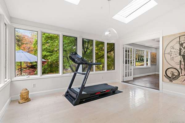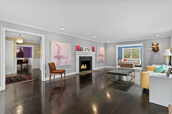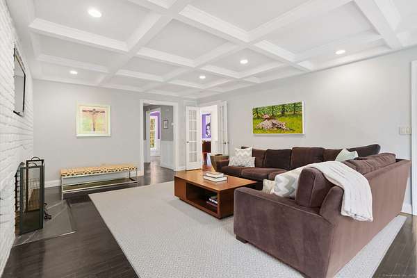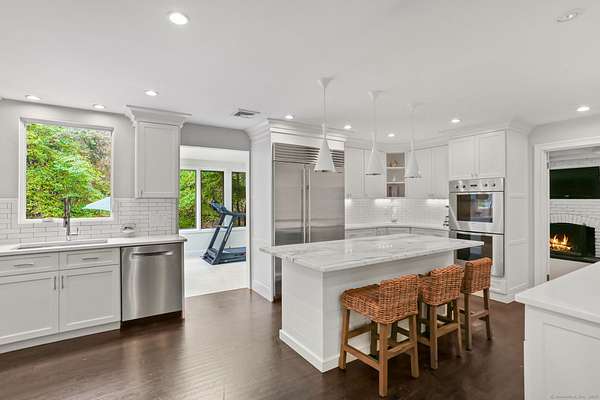 Set back from the street in a desirable lower Weston location, this elegant colonial offers just under 4,000 sqft of beautifully finished living space. Classic in form with farmhouse-inspired details, the exterior showcases traditional siding, board-and-batten accents, dual front doors, and detailed window trim that lend timeless curb appeal. Inside, the home impresses with remarkable scale and craftsmanship. The main level living spaces flow beautifully, offering versatility for modern living. A dramatic coffered-ceiling living room opens seamlessly to the kitchen and sun room, creating an effortless connection for both everyday comfort and entertaining. The dining room features raised paneling and intricate millwork, while additional spaces provide flexibility for an office, playroom, or media room-adaptable to any lifestyle. At the center of it all, the updated kitchen is a true showpiece with a Sub-Zero refrigerator, double ovens, custom light-stone countertops, and luxury appliances. The open design invites gathering while maintaining a refined sense of style and purpose. Outdoor living completes the picture with expansive stone patios, a built-in grill, and a fire element surrounded by multiple areas for dining and relaxation. A rare opportunity in lower Weston, blending timeless design and exceptional craftsmanship throughout. Less than 50 miles to NYC & 10 min to downtown Westport. Lower Weston offers the small town feel with convenience, Welcome Home!
