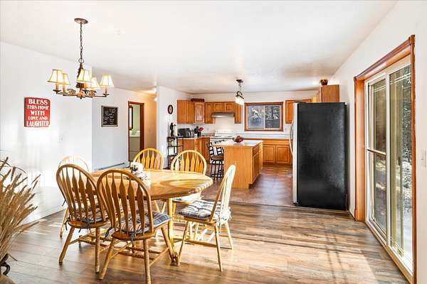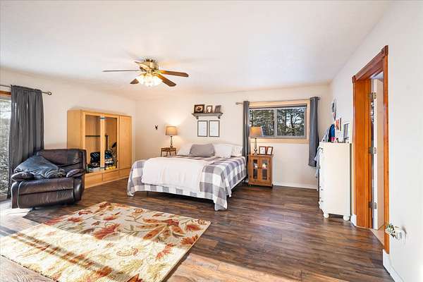 What a setting! This beautifully wooded 10 ACRE PARCEL has peace and privacy to the max. With gently rolling topography and wildlife galore, the view out your new picture windows never gets old. The spacious, 4 bedroom 3 bath, almost 5000 sq ft house has all the major living spaces, the laundry room and both the primary bedroom and a guest bedroom on the main level. The walkout basement features 2 more bedrooms, a second living room and 2 huge bonus rooms. The home has upgraded flooring, new windows, vaulted ceilings, lots of natural light and a pellet stove in the living room to make things cozy. The primary suite has a large walk-in closet, both a tub and shower, and sliding glass door access to the exterior. Newer roof and the house is hard-wired for a generator. Fenced backyard and room to park all your toys! Maximize your investment - surveyor has preliminarily determined it is possible to split the 10 acres.
