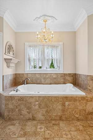 The main level features a spacious master suite with two oversized walk-in closets, a spa-like en-suite bathroom (walk-in tile shower, jetted tub), and private access to a screened-in balcony. A bonus room off the master is perfect for a home office or nursery.