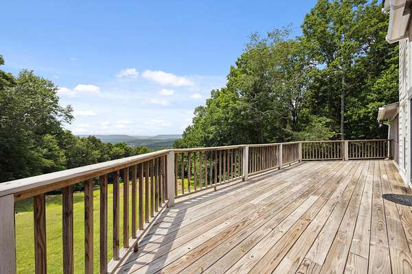 Enjoy the natural beauty from multiple outdoor spaces: a large screened-in porch, back patio, and a sweeping open-air porch, all offering unobstructed lake and ridgeline views.