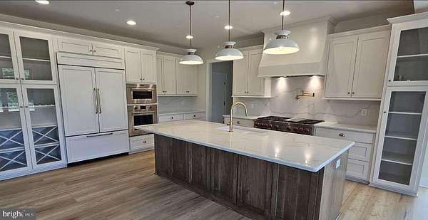 Welcome to 310 Bohemia Mill Pond Drive-a breathtaking custom modern home that seamlessly blends luxury, space, and tranquility in Middletown's premier Bohemia Mill Pond community. Set on a private 2-acre lot, this residence offers five spacious bedrooms and five full bathrooms, all surrounded by abundant natural light at every turn. Built by C and M Homes, renowned for their distinguished Amish craftsmanship, this property promises impeccable quality throughout. Interior Highlights The gourmet kitchen is the centerpiece of the home, featuring custom cabinetry, premium Wolf appliances (including a six-burner gas cooktop with two ovens, double wall ovens, a SubZero refrigerator, and built-in convection microwave). Adjacent, the expansive family room boasts a striking custom gas fireplace-perfect for relaxation or entertaining guests. A first-floor bedroom with an elegant spa-inspired bathroom provides ideal accommodations for in-laws or visitors. Upstairs, you'll find four additional bedrooms, three bathrooms, and a generous laundry room. Each bedroom includes a walk-in closet. The primary suite serves as a luxurious retreat with a lavish bathroom and THREE oversized custom walk in closets. The finished basement offers acoustic ceiling tiles for noise-proofing and studio-quality sound along with extensive unfinished storage space. Exterior Features The home's stunning exterior showcases stone and Diamond Kote finishes. Outdoor living spaces include a covered patio and wraparound porch, offering picturesque views and countless opportunities for recreation and relaxation. A massive attached three-car garage adds convenience and storage. Warranty This home comes with a new home warranty on structure, hvac, roof, appliances, and more! This East facing home's location and community is ideally positioned just minutes from downtown Middletown's charming shops and restaurants. This home is also near the Upper Chesapeake Bay, providing boating access and exquisite waterfront dining. Located in the acclaimed Appoquinimink School District-one of Delaware's top educational systems-310 Bohemia Mill Pond Drive offers a rare blend of privacy and community. With all neighborhood lots sold and this being the only new construction in Bohemia Mill Pond, this is a truly unique opportunity. Discover your private oasis-schedule your tour today, and experience a home you'll never want to leave.