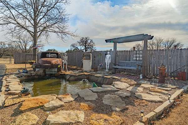Welcome to your slice of Texas country living just a short distance outside the city limits of Graham, TX! This charming 3-bedroom, 2-bathroom brick home offers 1,685 square feet of comfortable living space on a spacious 2.71 acre lot, surrounded by beautiful mature oak trees and featuring a seasonal, peaceful creek running along the back of the property. Step inside to a warm and inviting living room featuring a cozy wood-burning fireplace with electric blower, and beautiful new Pergo flooring (installed throughout the house in 2023) that adds a modern touch to the classic Texas charm. Enjoy meal prep in a vintage-inspired kitchen with rich red cabinetry and serve family meals in a dedicated dining room that opens to the living room. Several other recent updates to the home include new windows (2024), new HVAC system (2022), a new shower and bathtub (2025), and one of two hot water heaters (2025). Relax and unwind in the expansive screened-in porch, perfect for morning coffee or evening breezes while soaking in the peaceful rural views. For those who love their outdoor spaces, the backyard offers a true oasis with an above-ground pool and custom wooden deck--ideal for summer evenings under the stars. Includes a large 32' x 20' garage with workshop for all your projects, vehicles, and storage needs. Another out building, affectionally called the "chick shack" (once an actually chicken coop) has been converted to a functional and flexible space featuring three separate rooms that can be used for storage, crafts, a workshop, or a great sleeping space for visiting grandkids. True country living means wildlife right in your backyard, with deer and other native animals frequently visiting the property, adding to the serene, private atmosphere. Escape the hustle while staying conveniently close to town--this property perfectly blends peaceful rural charm with easy access to Graham amenities. Don't miss your chance to make this updated, move-in-ready home yours!