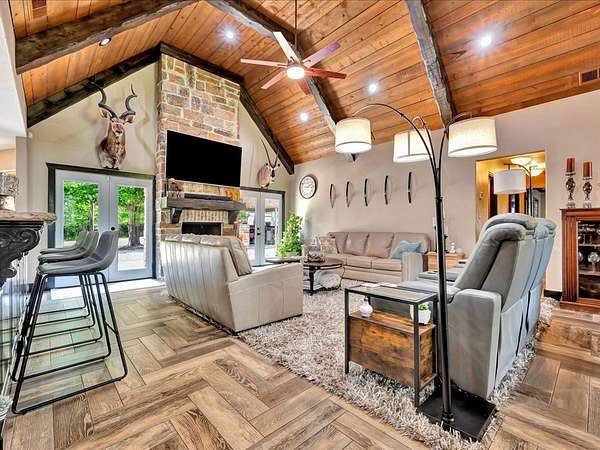 Elegant Country Estate with Two Homes on 4.85 Acres. Nestled on 4.85 picturesque acres, this exceptional estate seamlessly blends luxury, comfort, and convenience--just minutes from town. The custom 3,600 sq. ft. main residence offers four bedrooms and four bathrooms, along with thoughtfully designed spaces including a wine room, game room, and a versatile bonus room above the 2.5 car garage. A spacious 1,600 sq. ft. guest house adds three bedrooms and two bathrooms, providing ideal accommodations for extended family, guests, or multi-generational living. Resort-style amenities elevate the property, featuring a sparkling pool, pool house with bathroom and sauna, and an expansive outdoor kitchen with a built-in grill and ice maker--all perfect for entertaining. A covered patio invites year-round gatherings. Outdoors, enjoy a stocked pond, greenhouse, and an A/C insulated 30x50' shop with lean-to, offering both recreation and functionality.