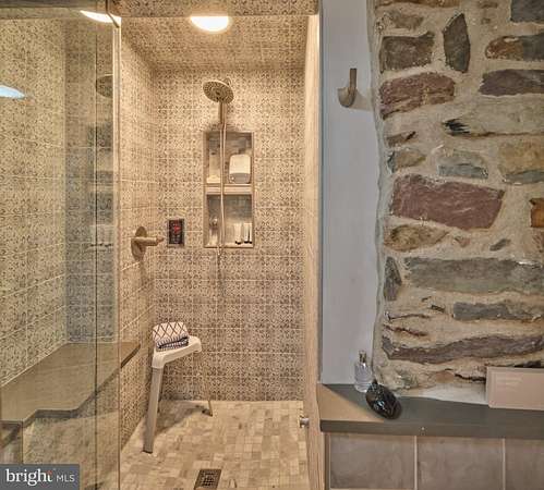 Welcome to year-round resort living at 310 Durham Road! This elegant compound exudes luxury, charm, and sophistication, and offers an experiential lifestyle to rejuvenate your soul! Located in serene Tinicum Township, Bucks County, this nearly 3 acre property includes the Main House built during the mid-18th & early 19th centuries, a recently constructed Carriage House, and a magnificent Pool House. The historic Main House, with newer shake roof, windows, kitchen and baths, has been maintained and expanded with respect to preserving the original architectural integrity. Entering the front door with period hardware, you will be taken by the openness of the spacious Living and Dining Rooms, each with woodburning fireplaces.... the perfect venue for quiet evenings at home or hosting dinner parties with family & friends. The clean & neutral color palate and light colored wide-plank flooring will serve as a pleasing backdrop to showcase your most treasured art and collectables. Enter the cozy Family Room, and you will note the grand walk-in fireplace outfitted with a wood stove, and high, wood-beamed ceilings. The adjoining gourmet kitchen has been designed with no expense spared.... custom cabinetry, quartz countertops, Bosch appliances, and magnificent Italian tilework. This wonderfully functional space can accommodate multiple chefs, and opens to an intimate Breakfast Room, complete with fireplace fitted with a gas stove. The perfect place for morning coffee! Step out to the Trumpet Vine covered stone patio for an intimate dinner.... you and your guests will be transported to the charm of the South of France! A convenient first-floor Full Bath features exposed stone, steam shower, and bidet toilet. Upstairs, the sundrenched Primary Bedroom features a woodburning fireplace, and a luxurious en-suite bath, complete with original fireplace with propane hookup and deep soaking tub. Perfect for relaxing on winter nights! A spacious Guest Room and Hall Bath complete the 2nd floor. Upstairs, the finished attic can be used for additional sleeping space, storage, or office. Across the driveway, a beautiful Carriage House has been recently constructed to complement the period architecture of the Main House. Enter the spacious fully-equipped gym and also find a luxurious full bath and 4-person dry sauna. Upstairs, an expansive studio space can accommodate a multitude of uses, and features wonderful outdoor views and cozy woodburning stove. Outside, extensive hardscaping is a fabulous venue for large gatherings or quiet afternoons at home. To the rear of the property, you will find an expansive heated salt-water pool and breathtaking Pool House, a perfect summer gathering spot! Marvel at the soaring architectural elements of this elegant structure, complete with wood-burning fireplace, and intimate spaces for dining & lounging. The push of a button activates the electronic screens on 3 sides to keep your evening gatherings enjoyable. Enjoy the delights of Frenchtown and New Hope, a few minutes away. Make your appointment today for a glimpse of your elevated lifestyle at this magnificent property. More than a home.... an entertainers dream!