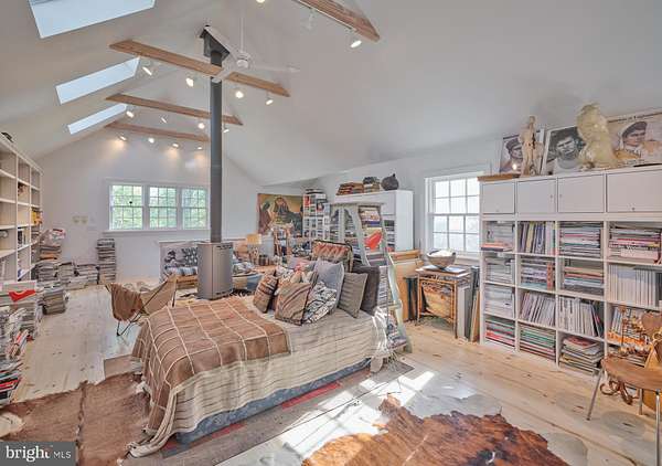 - Attic, Breakfast Area, Built-Ins, Ceiling Fan(s), Eat-In Kitchen, Exposed Beams, Family Room Off Kitchen, Formal/Separate Dining Room, Gourmet Kitchen, Pantry, Primary Bath(s), Skylight(s), Sound System, Table Space Kitchen, Traditional Floor Plan, Tub Shower Bathroom, Upgraded Countertops, Walk-In Shower Bathroom, Window Treatments, Wood Floors, Wood Stove