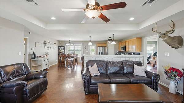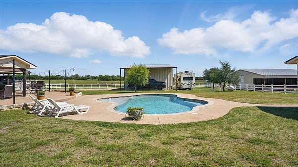 Mock Ranches is please to offer this gem in Central Texas. This 6.6 +/- horse property is a horse lovers dream. The house features approximately 1850 sq. ft, with an additional 150 sq.ft. Mother-in-law room that is plumbed for a bathroom, with a separate entrance! The spacious backyard features a fantastic porch, gazebo, fire pit and beautiful pool. A 30x30 shop, with 15' eaves off each side provides a great space to store toys, trailers and equipment. A recently built horse barn, with 3 stalls, tack room and wash rack is ready for you to bring your equine friends! Come sit on the back porch and watch the kids swim or ride horses! There is a great fishing pond in the back as well! There is an HOA but it is not "Active" - no dues, no enforcement body. Seller Disclosure, On Site Sewer documents available. Buyer responsible for verifying all information.