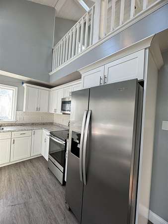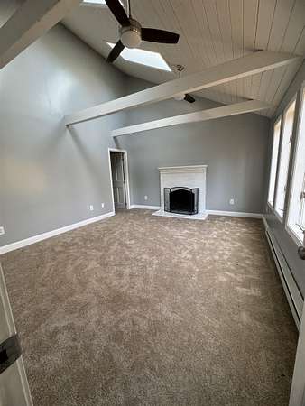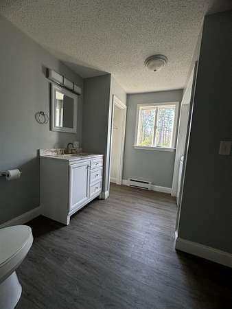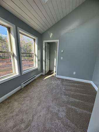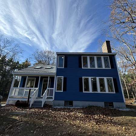 Available for rent May 1st, this 2 bedroom 2 bathroom Contemporary Saltbox home boasts natural light throughout and is tucked back from the road in a serene wooded setting. The first floor welcomes you with an abundantly bright kitchen with kitchen island and ample counter space. There is a full dining room with back deck. Stay cozy in the living room by the wood stove. There is a first floor bedroom or could alternate as an office or den, and a full bath with laundry with Washer and Dryer provided round out this floor. Upstairs you will find a spacious primary bedroom under vaulted ceilings with a decorative fireplace and walk in closet, connected to a full bathroom shared with another potential bedroom or office space, plus a full open loft perfect for a sitting room or versatile bonus space. There is plenty of parking in front of the home, and a wide open yard to enjoy. An ideal commuter location including to Boston! Tenant pays all utilities. No smoking. Pets may be considered with an additional deposit. Application and background / credit check required. (Photos from previous listing - skylights have since been removed). Request your showing today!