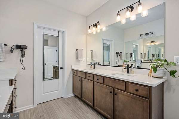 Welcome to the perfect blend of modern design, space, and lifestyle in the highly sought-after Liberty Hall community in Stafford, VA. Built in 2022 by Atlantic Builders and set on a private 1.5-acre homesite, this beautifully upgraded home offers the space you've been looking for-inside and out-while still being conveniently located to everything Stafford has to offer. From the moment you arrive, the stone-front exterior and oversized two-car garage with keypad entry create a strong first impression. Inside, the home opens to a light-filled, thoughtfully designed floor plan built for the way people live today. The heart of the home is the stunning gourmet kitchen, featuring a quartz top island with an additional second custom quartz island with added storage, soft-close cabinetry, and a full walk-in pantry that keeps everything organized and within reach. Just off the kitchen, a pocket office provides the perfect work-from-home setup without sacrificing space. The main living area is warm and inviting, centered around a gas fireplace and an abundance of windows capturing the natural lighting and a scenic view. The morning room adds even more natural light, complete with a ceiling fan and sliding glass door that leads to your outdoor living space. Step outside to the composite deck featuring a built-in bar top, grill bump-out, and lighted stairs-ideal for entertaining or simply unwinding at the end of the day. Out back, your private retreat continues with a walkout basement leading to a patio and a Hot Springs Grandee saltwater hot tub (2023), designed to comfortably seat up to seven. Whether hosting friends or enjoying quiet evenings under the stars, this space delivers. Enjoy entertaining this summer on your 26 x 12 Trex deck with bar top, and additional grill bump out. Upstairs, the primary suite is a true escape, offering two walk-in closets, a massive walk-in shower, and dual vanities with quartz countertops-including a separate additional vanity space for added convenience. One secondary bedroom features a private en-suite, with its own walk-in closet, while the remaining bedrooms share a Jack-and-Jill bathroom with a double vanity also with quartz countertops, providing both functionality and privacy. The finished walkout basement adds even more versatility, complete with a bedroom and full bathroom, plus an additional room that can easily serve as a guest space, gym, or home office. This nearly new home offers the rare combination of modern construction, premium upgrades, 9' ceilings on all three levels, and acreage-giving you the privacy you want without sacrificing convenience. If you've been searching for a move-in ready home with space to spread out, entertain, and truly enjoy where you live, this one checks all the boxes.