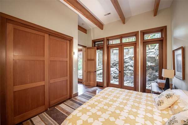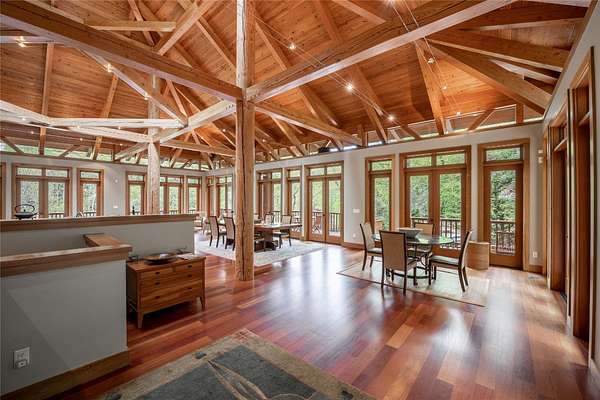 East meets West in this unique, Greene and Greene-influenced, Japanese-style mountain getaway that offers the very best of Blue Ridge Mountain living. Situated on 17+ acres in the lush woods of the Cullowhee Forest community, this truly inspirational, four-bedroom, four-and-a-half-bath collaboration between the owners and MossCreek Designs emulates the simplicity and minimalism of traditional Asian architecture. The dwelling's roomy design efficiently utilizes vertical space with two main-level bedrooms, plus two-and-a-half bathrooms and spacious, open-concept living, dining, and kitchen areas. Floor-to-ceiling windows bring the serene sights and sounds of surrounding nature inside - including your private waterfall and hundreds of feet of river frontage. The lower level houses two additional bedrooms, two bathrooms, a separate kitchen, a bonus room, and a laundry space. Gorgeous wrap-around, covered decks on both levels provide the perfect spot to enjoy your preferred beverage while overlooking the enchanting grounds that include hiking trails, mesmerizing water features, outdoor showers, and magnificent Japanese gardens, all with a stunning backdrop of luxuriant mountain views. The primary lot is 6.37 acres; the secondary lot is 11.47 acres and encompasses a nearly-level mountaintop knoll, perfect for a second dwelling. Well-loved and maintained, Hinoki House is a true treasure nestled in the ideal setting. Cullowhee Forest is a gated community that offers the best of mountain living - a pristine scenic drive to this end-of-the-road, private property, a 75-foot waterfall, High Falls trail access, and fiber-optic internet. Located just 25 minutes to the town of Cashiers, which offers a variety of shopping, dining, and recreation opportunities; 15 minutes to Lake Glenville, and two restaurants that regularly offer live music. Asheville and its regional airport are a 60-mile jaunt, and Atlanta, Charlotte, and Greenville all lie within about a 2- to 3-hour drive.
