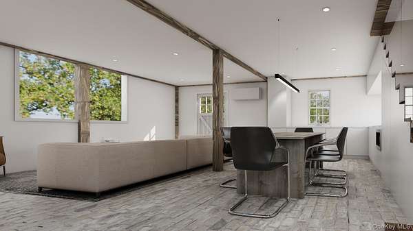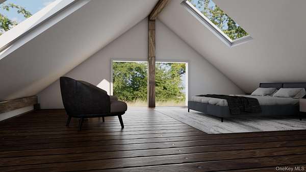 Bellwether Farm - A Rare Compound Opportunity in the Heart of Bedford Horse Country. Bellwether Farm presents a singular opportunity to create a fully bespoke country estate on Mt. Holly Road, one of Northern Westchester's most coveted addresses in the heart of Bedford-Katonah horse country. Approached along an idyllic country road, the property arrives like a page out of time: four pastoral acres of open meadow, structures that trace their roots to the early 19th century, and the unhurried feeling of a European farmstead - all just an hour from NYC. Bellwether Farm offers something vanishingly rare - the ability to build a primary residence entirely to your own vision, on land already home to a remarkable collection of historic structures. Architectural plans exist for a modern farmhouse of approx. 3,600 sq ft (plus unfinished lower level), featuring dramatic vaulted ceilings, a full wall of glass opening to sweeping meadow views, and clean proportions that sit comfortably within the landscape. The design envisions four bedrooms and three baths, as reflected in the renderings. A seven-bedroom septic is approved and construction drawings are in hand, providing a clear path toward completion. The property's architect and builder are available to collaborate, or a buyer may engage their own design and team. What distinguishes Bellwether Farm is a grandfathered multi-structure configuration no longer achievable under current Bedford zoning. The result is a thoughtfully composed compound comprising approx. 3,300 sq ft across three buildings - the Barn, Carriage House, and Milk House - offering rare flexibility for living, hosting, and creative work that a single-structure residence simply cannot. The Barn, featuring historic details like wavy glass diamond-paned windows and classic barn doors, includes a stylish two-bedroom apartment above and unfinished studio below, suited as a wellness space, creative studio, or lounge. Ready to occupy from day one, the apartment is an ideal base while overseeing construction. The Carriage House, with hand-hewn beams, antique brick floors, and new large-scale commercial glass, awaits final transformation as home office, creative studio, or guest cottage, with living and kitchenette on the main floor and lofted sleeping quarters above. Completion plans for both are approved by the Town of Bedford. The charming Milk House sits quietly apart - perfect for a writer's studio or garden retreat. Once a thriving working farm, the land remains essentially untouched - open pasture, long meadow views, and historic stone walls that speak to generations of quiet, unhurried life. Mature plantings frame an effortless setting for entertaining, future gardens, and pool placement. A gravel motor court lends a graceful arrival that feels entirely of the place. Bellwether Farm is a rare chance to build something entirely your own - a country estate with room for guests, and creativity, each in its own dedicated setting, in one of the Hudson Valley's most beautiful and sought-after enclaves. Renderings shown. Details available upon request.