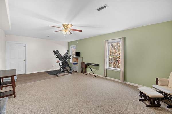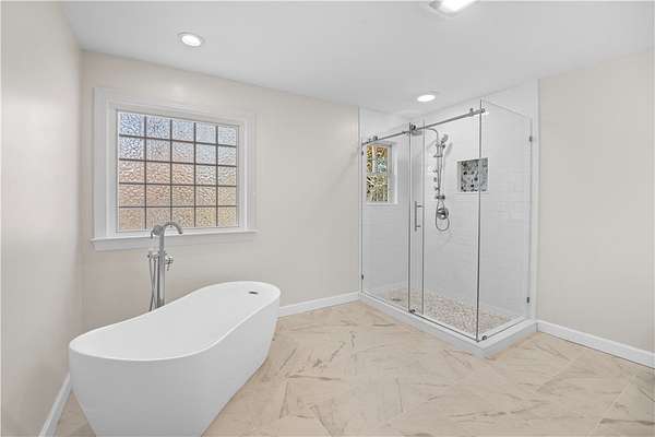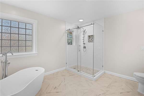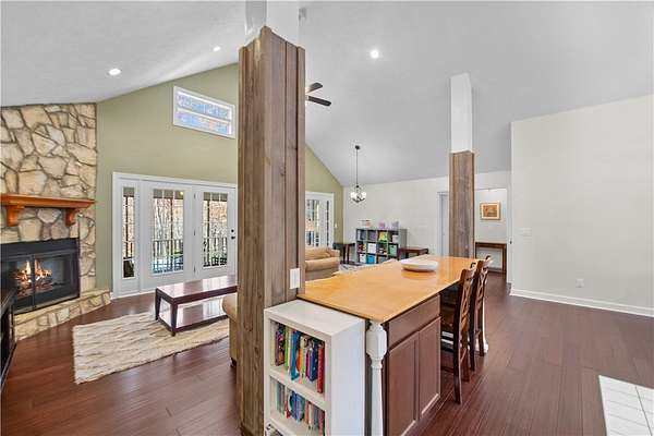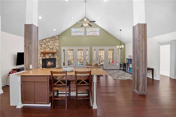 - Bath In Primary Bedroom, Bathtub, Cathedral Ceilings, Ceiling Fans, Dual Sinks, Fireplace, High Ceilings, Main Level Primary, Pull Down Attic Stairs, Separate Shower