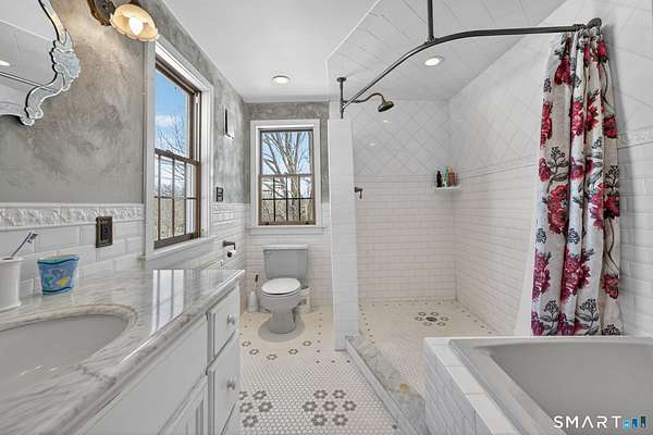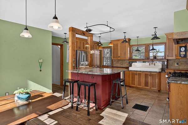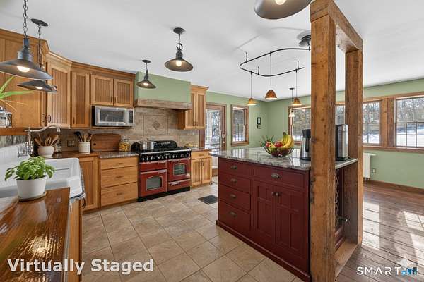 Step into the enchanting story of this 1738 Colonial, where historic soul meets a graceful 1987 three-story addition. Lovingly preserved and thoughtfully refined, this home is a beautiful marriage of antique character and contemporary luxury. The main level radiates warmth, centered around a spacious chef's kitchen designed for gathering. Imagine hosting dinners in the formal dining room or relaxing in the living room and den-each anchored by its own flickering fireplace. A quiet study, laundry room, and chic powder room ensure every modern need is met with effortless style. Retreat upstairs to a sprawling primary suite that feels like a private sanctuary, featuring a lavish ensuite bath, a generous walk-in closet, and a balcony for peaceful morning coffee. This level also hosts two additional guest rooms-both with charming fireplaces-along with an airy family room and two more full baths. The bright, walk-out lower level offers a wonderful "in-law" retreat or guest wing, complete with a cozy lounge, full bath, and dedicated office. The grounds are a true outdoor oasis. Framed by iconic double stone walls, you'll find: A shimmering private pond and lush gardens kept vibrant by a dedicated sprinkler system. A sparkling in-ground pool and a charming pool house for summer entertaining. A grand two-story barn offering endless creative possibilities. This isn't just a home; it's a lifestyle waiting to be embraced.