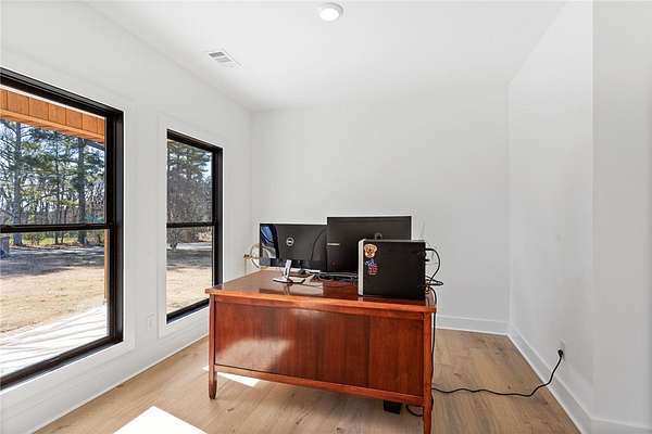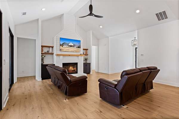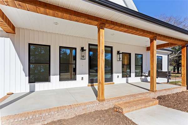 Welcome home to this custom built modern farmhouse on 2 plus acres outside city limits. Step up onto the concrete front porch with cedar columns and enter into your dream home via the double 8ft doors. To the left of the spacious foyer is an office that could easily be used as a dining room, play room or turned into a 4th bedroom by adding a closet & door. Looking into the large open living area, your eye is drawn to the vaulted 14 ft ceiling. The unique custom designed gas log fireplace provides warmth and old world charm. Flanked by cabinets and cedar shelving to display your favorite decor pieces. The 8ft sliders that open onto the covered porch that is perfect for enjoying your morning coffee or your end of the day beverages as you ponder the day looking out over your above ground pool . Back in the kitchen the 10.5 ft island provides lots of prep space for cooking and entertaining, quartz countertops allow for easy clean up and care . Double ovens are perfect for cooking for large gatherings. The gas cooktop & stainless steel hood give this chef's kitchen a professional appeal and the walk in pantry provides plenty of storage.The dining area is surrounded by roll out windows perfect for enjoying warmer weather.The 8ft door leading to the master suite offers a large closet with natural lighting and plenty of room to store everything! That's not all , don't forget the soaking tub and large walk in shower.The split bedroom floor plan offers privacy but not seclusion . Two ample size bedrooms share a full bath and down the hall is a powder room perfect for guests. A large storage closet to help keep the main house neat and tidy and the large laundry room with cabinets and sink are a dream! The tankless hot water makes sure you have instant hot water even shower after shower! Two large outbuildings that are wired, one with roll up doors to house all your outdoor equipment are also included. Schedule your showing today!