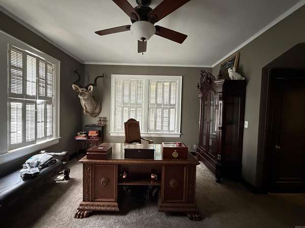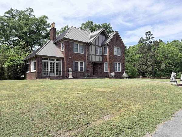 Step into timeless elegance with this stunning 1939 Tudor-style home, beautifully situated on 6 picturesque acres. Rich in character and charm, this one-of-a-kind property showcases original hardwood floors, soaring high ceilings, and classic architectural details that create a warm and inviting atmosphere throughout. The spacious layout offers three bedrooms and three full baths, along with two dedicated office spaces—perfect for working from home or accommodating a variety of lifestyle needs. The large living area features a cozy gas fireplace, ideal for gathering and relaxing, while the home’s thoughtfully designed flow provides both comfort and functionality. Enjoy the beauty of natural light streaming through quality Anderson windows, enhancing each room’s timeless appeal. The generously sized bedrooms offer comfort and privacy, making this home as practical as it is beautifulIn addition to the main residence, the property includes a 760 square foot guest house—perfect for visitors, extended family, or potential rental income. With its blend of historic charm, modern updates, and expansive acreage, this remarkable Tudor home offers a rare opportunity for peaceful living.
