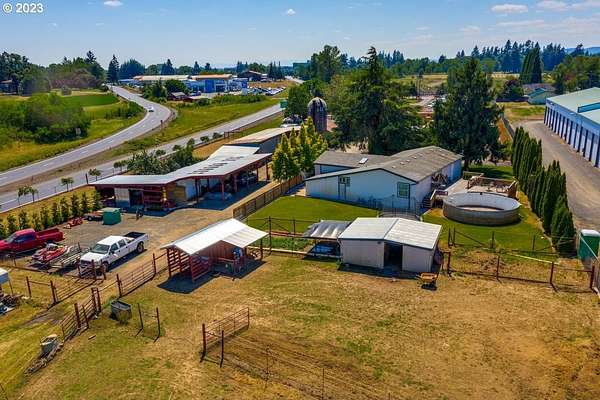 Est $9,517/moRare investment opportunity in fantastic location! 4.2 acres bordering Hwy99, zoned light industrial. Gated, fenced acreage boasts charming pond w/recreation shed, lighted sand volleyball court, expansive gravel lot for extensive parking/storage, two large barns/outbuildings, office, silo, cross-fenced pastures, paddocks & livestock sheds. 2007 manufactured home w/3 bdrms, 2 baths, 1512 sqft & pool. 1999 home w/2 bdrms, 2.5 baths & 1056 sqft.