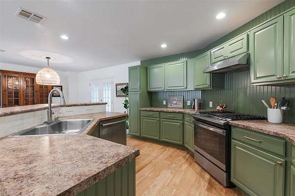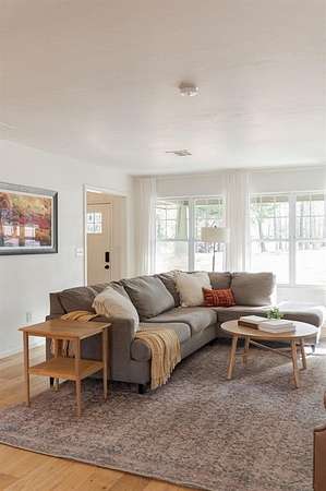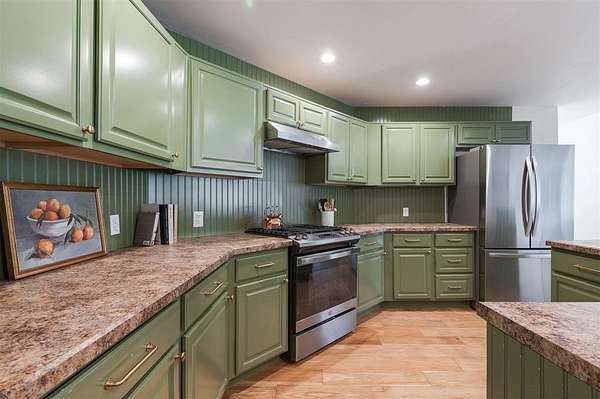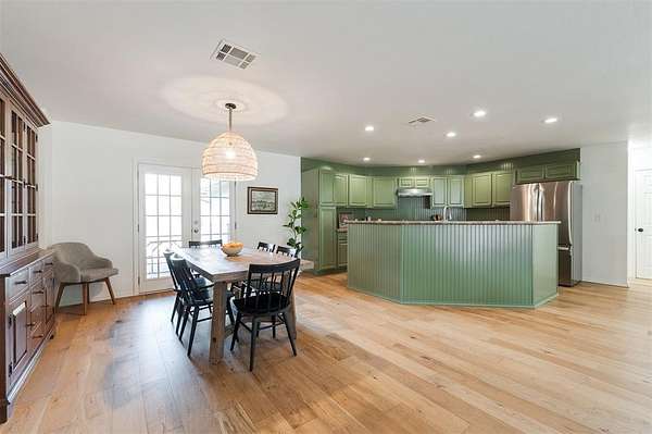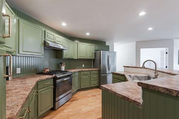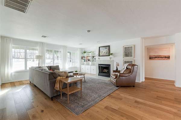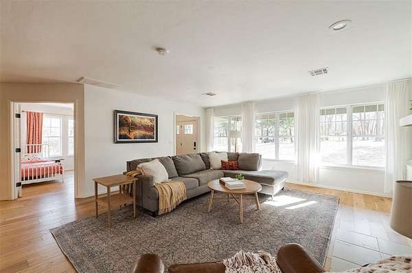 A quaint soft green home rests quietly on 2.5 acres in one of Edmond's most sought-after pockets. Thoughtful updates have been done throughout the home, including fresh paint and new flooring. The living room is bright and light-filled, with a wall of beautiful windows that let you take in the peacefulness of the land and the trees beyond. A cozy fireplace adds warmth and makes the space feel comfortable and inviting. The kitchen leans into comfort in the best way, with soft green cabinetry and warm wood floors that give off an easy, cozy feel. There's ample storage for everyday life, and everything feels right where it should be. The primary suite feels calm and spacious, with an en-suite bath featuring a deep soaking tub, a walk-in shower lined with white subway tile, and a generous closet that completes the space. The second bedroom is quietly set back, with a full bathroom nearby. The home also offers an office that doubles as a third bedroom and a conveniently placed laundry area with a sink and storage closet, practical for everyday life. Through the double doors, a patio opens up for summer evenings spent outdoors, watching the light change across the land. Beyond the home, a large shop(25x35) with electricity offers space to create, store, or tinker, whatever life calls for. Homes like this don't announce themselves. They're discovered.