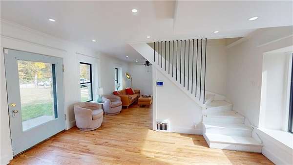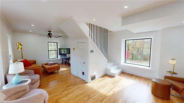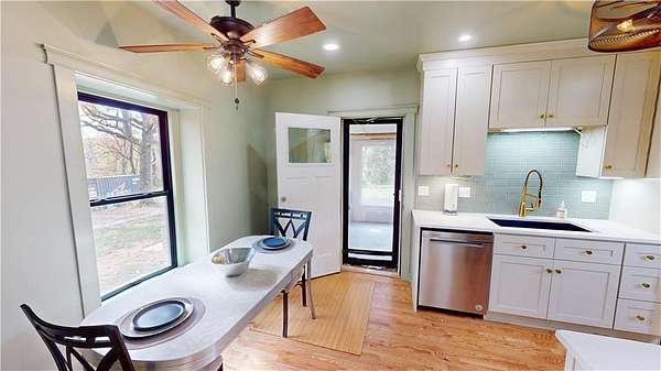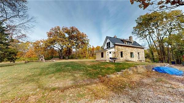 Dreamy, historic, artist retreat in the woods, just a few minutes from the Oracle Health campus, and only 20 minutes from downtown. This home was once inhabited by artist, Ross Eugene Braught, who taught at the Kansas City Arts Institute, and was a friend of Thomas Hart Benton. Benton revered him as the "greatest draftsman of our generation". Tucked into a 2.5-acre secluded lot, surrounded by trees, this incredible property is poised and ready for remote living, but within the city limits. Amazing for a "getaway" property that doesn't require a long drive out of the city, or a permanent home, this historic property, built in 1923, is beautifully remodeled, with a brand new, eat-in, country kitchen, two bedrooms upstairs, and a third possible bedroom, den, or family room on the first floor, which can be finished to suit your needs, and is already wired for a mini-split for heating and cooling. Gorgeous new hardwood flooring on the 1st floor. Brand new bathrooms, washer/dryer hook-ups in hallway upstairs, and all new windows throughout the home. All the early 20th Century charm and character is still intact, but modernized. Plenty of room for adding a detached garage or carport, or any out-buildings your heart desires. Stone exterior, fire pit, and stone outdoor fireplace. Google Fiber available.