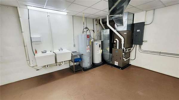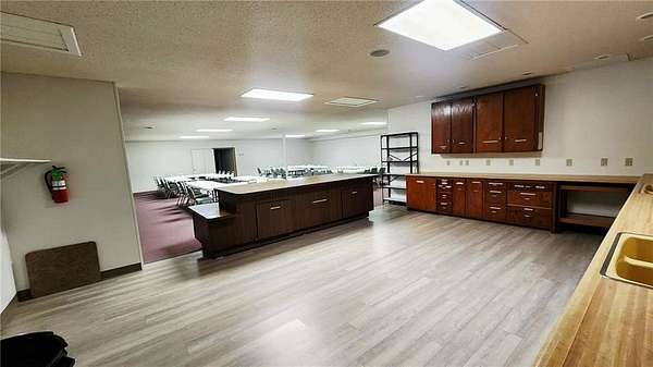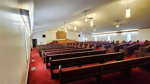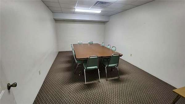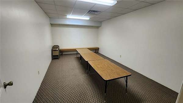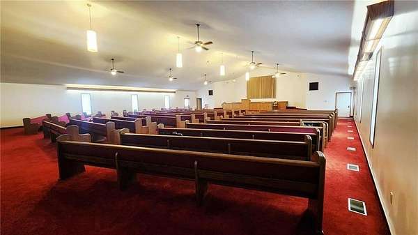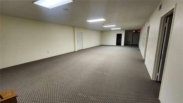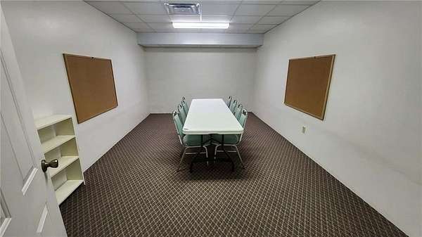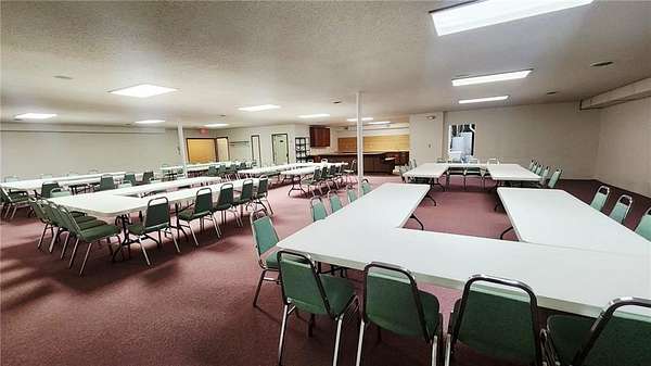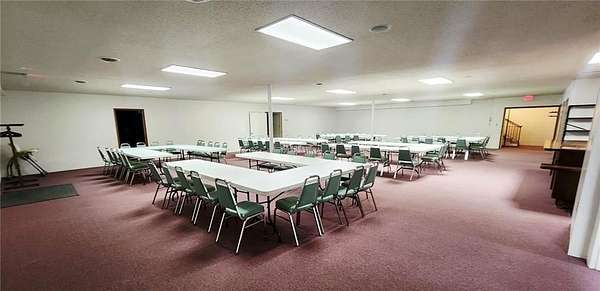 Are you looking for a commercial property that has endless options. Sitting on almost 10 acres the property can be used for multi purposes. The building is almost 9000 sq ft and is suitable for office space as well as a multi purpose facility. There are no stairs to utilize the main level. There is an open span room on the main floor with a center ceiling height of approximately 20ft with space in the front that could be a stage with a sound system or it could be used for light warehouse or climate controlled storage. The front and foyer has multiple rooms for conference rooms, there are bathrooms available at the front and back of the building on the main floor. There is a front and rear stairway to the fully finished basement which has restrooms, a huge open area with multi use opportunities and a large full kitchen as well as a kitchen storage room with two utility sinks and open shelving. In the rear of the basement are 10 rooms, 7 of which are currently used for classrooms and one room for storage and mechanical equipment. There is also outside stairway access to the basement as well as from inside the building. Outside, there is a large attached covered carport/covered entry and a large parking area with parking to accommodate around 300 cars as well as a 2 car garage/shop/storage building. The remainder of the 9.9 acres can be used for any number of options. The opportunity for additional buildings/other business opportunities is endless with enough land to the south and west to accommodate multiple buildings. There are multiple ch/ca units in different areas of the building to insure adequate climate control throughout the building. Call and set up and appointment to see this amazing property.