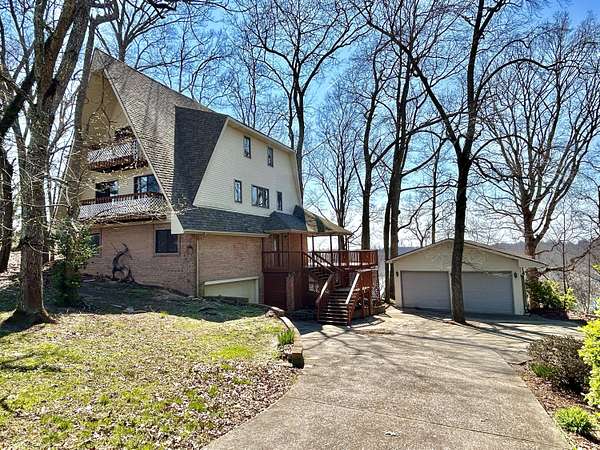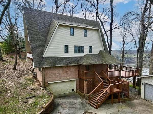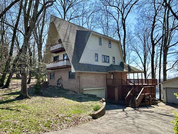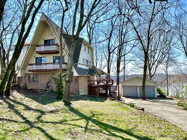 Est $2,365/moPRICE REDUCED $50,000!!!! Amazing year-round lake views of beautiful Lake Cumberland from this three level A Frame lake home, features 5 bedrooms with 3 and 1/2 baths, three masonry wood burning fireplaces, three levels of decks for outdoor entertainment. This home sits on 2 1/2 lots totaling almost 2 acres. A partial unfinished basement with a 2-car garage plus a detached 2 car garage for your boat and lake toys. Just minutes to marinas and boat ramps!!!
