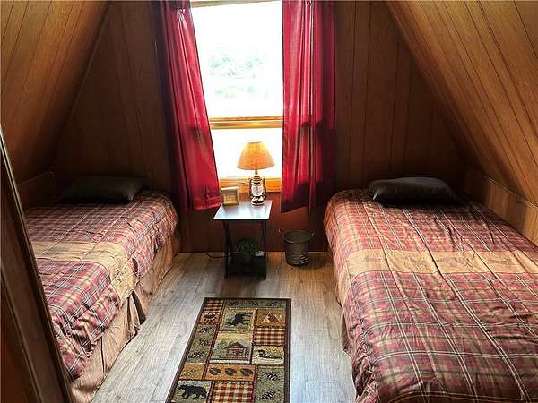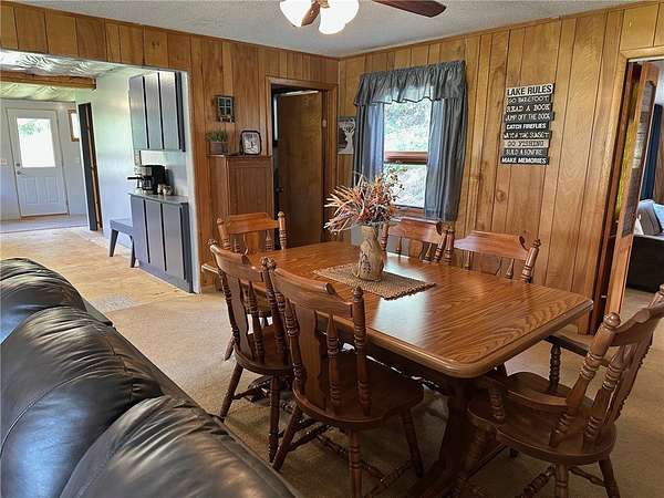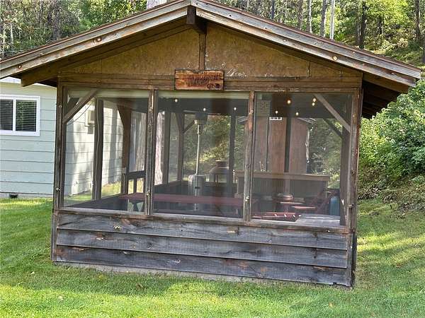 Looking for a peaceful and private lot with a great cabin? No need to look any further. The lot offers 220 feet of shoreline, level elevation, large, detached screen porch, three sheds, and two detached two car garages for all your storage needs. Cabin is very spacious with beautiful views. Three bedrooms, one full bath, newly remodeled.