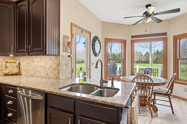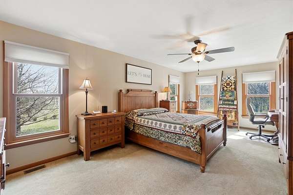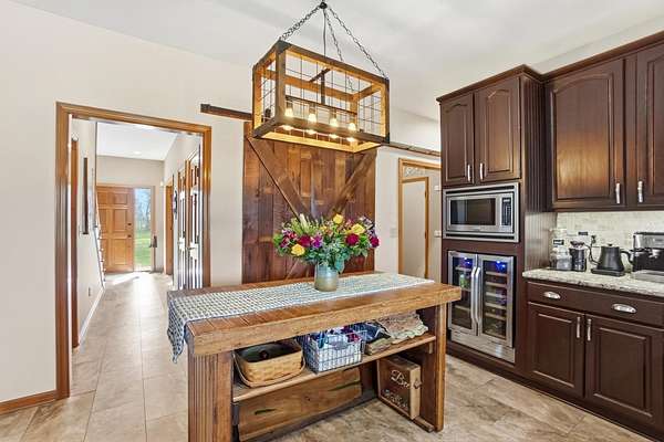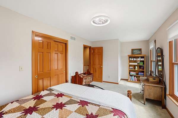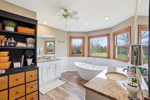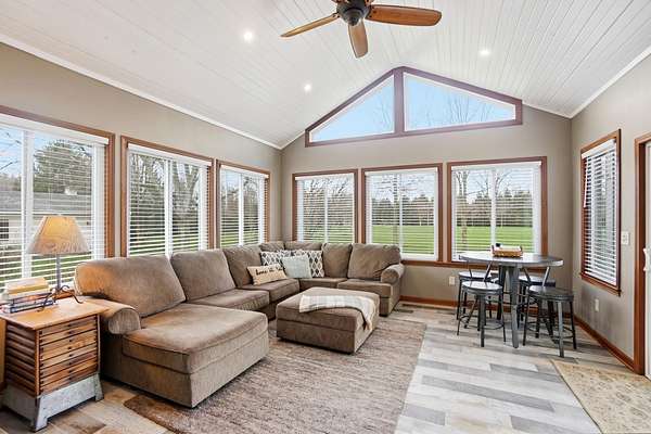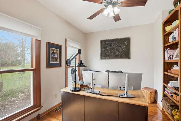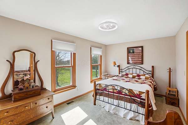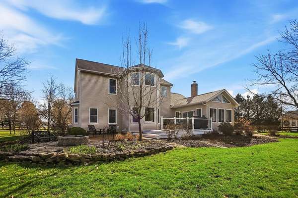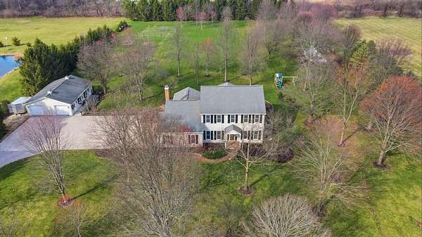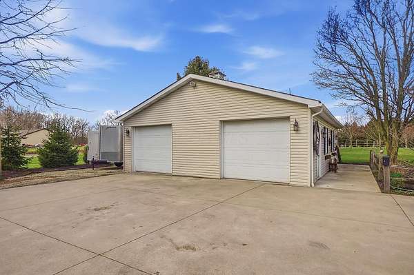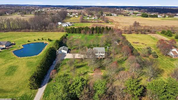 Welcome home to 3102 Clark Shaw Road! Over 5 acres to call your own in Olentangy Schools. Property features a 2 story custom built 3 bed, 2.5 bath home. Enjoy this spacious home with multiple living areas for every purpose, a dedicated home office, first floor laundry, finished basement rec room and hobby room (or workout space). The 4 season sunroom has dedicated electric heaters so you can enjoy all year long. The first floor features 9' ceilings throughout, plus vaulted ceilings in family room and sunroom. Kitchen features 42'' upper cabinetry and granite counters, pull outs for handy storage, and wait until you see the pantry! Upstairs are 3 bedrooms and 2 full baths. The primary bedroom is huge and features a walk in closet. The primary bath has 2 vanities, a soaking tub and lovely tiled shower. 2 additional bedrooms upstairs plus another full bathroom. Hardwood floors, LVP and ceramic tile on the first floor, carpet, tile, hardwood and LVP on the second floor. Finished basement space features large format ceramic tile with a rec room and a hobby room. Plenty of space for work out equipment or other pursuits. The unfinished basement area is spacious and allows for lots of storage. You will love the outside space, featuring no- maintenance composite decking and brick patio with bbq pit. A 30 x 40 outbuilding and a greenhouse/garden shed with dedicated propane heater are also features of this property. Wooded lot with mature trees and landscaping, including fruit trees, raspberry bushes, perennials and annual garden space ready for your green thumb! No worries about loss of power here - this home has a whole house generator! HVAC 2025, Hot water heater 2026, Gas Range 2026, Rosati wood replacement windows 2025. Seller is a licensed agent in the state of Ohio.