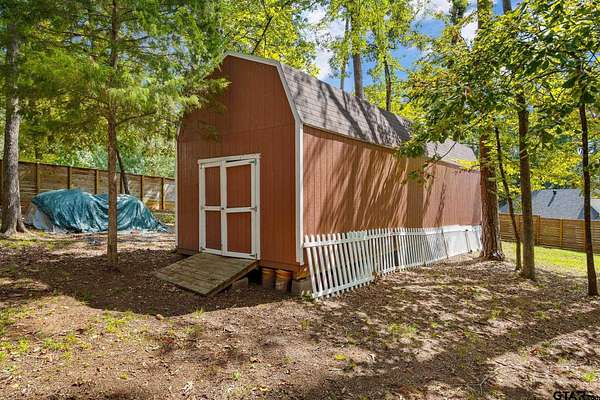 Welcome home to your country retreat at 3102 FM 346 E in Tyler, perfectly situated on a beautifully manicured 1.5+ acre lot in Country Place (Whitehouse ISD) This spacious 4-bedroom, 3-bathroom home boasts 3,206 sq ft of thoughtfully designed living space, complete with a 3-car garage. Step inside to find an inviting atmosphere with hardwood and laminate floors (no carpet!), elegant vaulted ceilings, custom millwork and crown molding, and charming built-ins. The home offers two living areas, each with a fireplace, and a flexible bonus space ideal for an office or gym. The large kitchen features a double oven and newer appliances, making it perfect for gatherings. This property offers peace of mind with major updates, including a new roof (2020) and two updated AC units (2020/2022), new water heater (2025.) Enjoy the peaceful East Texas countryside with incredible exterior features: a massive 12x48 workshop with a ramp and a custom 16x24 barn with a porch. Nestled among mature trees, this retreat offers the perfect balance of space, function, and tranquility, all just minutes from the amenities of Tyler. Low utilities and minimal street noise complete this exceptional property.