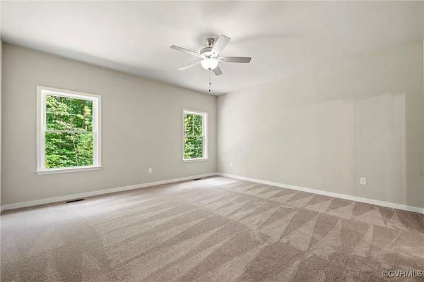 Under construction! Contact the site agent for details and estimated completion. The Randolph floorplan by Vertical Builders offers 4 bedrooms, 2.5 baths, and a first-floor primary suite on almost 2 acres! Off the entryway, a versatile flex room could be used in a number of ways including as a formal dining room or spacious home office. The spacious kitchen offers a pantry and an adjoining dining area. The heart of the home is the family room which is open to the kitchen with access to the rear covered porch, perfect for indoor-outdoor living. The first-floor primary suite offers a large walk-in closet and an ensuite bath with a double vanity, walk-in shower, and a water closet. A convenient first-floor laundry room and a powder room for guests complete the first floor. Upstairs, three additional bedrooms, all with walk-in closets, share a full hall bath with tub/shower combo. A spacious loft completes the second floor. The exterior offers covered porches at both the front and back, perfect for relaxing evenings. Positioned with easy access to I-64 and River Road West, Kensington Creek ensures seamless connectivity to both Richmond and Charlottesville, allowing you to enjoy urban amenities while relishing the tranquility of your private retreat.