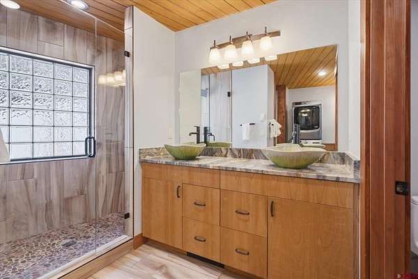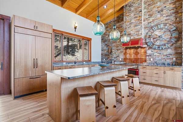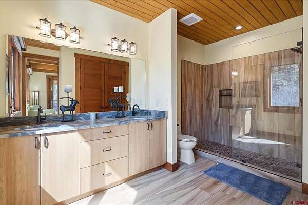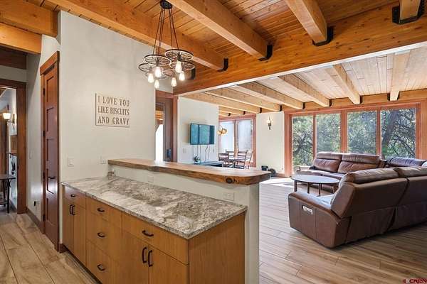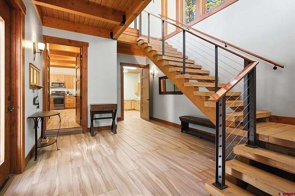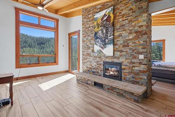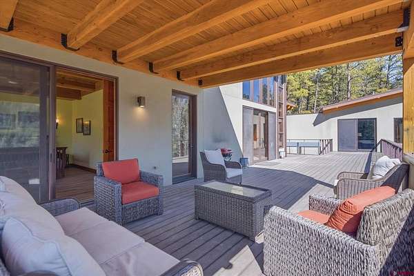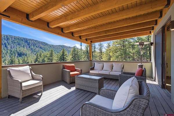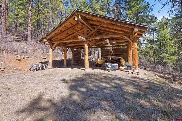Ashley Blackmore, Blackmore Group, O: 970-444-2431, ashley@ashleyblackmorehomes.com, www.crenmls.com: Bear Creek Preserve is tucked deep within the breathtaking Bear Creek Canyon Valley and offers a rare combination of 40 private acres, direct National Forest access via permit, and true end-of-the-road privacy. Just minutes from Bayfield and only 45 minutes to both downtown Durango and Pagosa Springs, providing convenient access to dining, shopping, skiing, hot springs, and year-round amenities. Overlooking the flowing waters of Bear Creek and surrounded by towering pines, dramatic canyon walls, and abundant wildlife, this exceptional Colorado mountain estate delivers a true high-country lifestyle with unmatched tranquility, star-filled skies, and the sounds of nature all around. Offered fully furnished and turnkey, making it ideal for immediate enjoyment as a primary residence, second home, or legacy retreat. From the moment you enter through the hand-crafted pivot door and grand entry tower, you’re greeted by expansive windows that frame sweeping views of the creek, canyon, and forest from nearly every room. The main living area features vaulted ceilings, seamless access to expansive covered and uncovered decks, and effortless indoor-outdoor living. The chef’s kitchen is anchored by a large eat-in island with Brazilian Fusion granite, custom panel appliances, and a Bluestar 6-burner range. The main-level owner’s suite offers a private sitting area, two-sided fireplace, walk-in closet with laundry, and direct deck access, while a separate guest suite provides comfort and privacy on the opposite wing. Upstairs, a bright office or creative space opens to its own private deck with inspiring views. The flexible layout includes 4 bedrooms plus a fully separate apartment (ADU) with its own entrance, full kitchen, living area, bunk room, and additional bedroom- perfect for extended family, guests, caretakers, or multi-generational living. The home is equipped with in-floor radiant heat with WiFi control, and is pre-engineered for a future elevator with a dedicated shaft already in place. A strong-producing private well supports the home and land. Outside, the property continues to impress with a 22’ geodesic dome greenhouse from Growing Spaces, designed to naturally regulate temperature without electricity and support year-round growing, including fruit trees and high-yield food production, along with a 600-gallon thermal water system. Additional improvements include a double-deep garage with a third bay and auto-lift, ample storage and workshop space, and a pole barn/carport for RVs, boats, tractors, ATVs, and all your Colorado recreation gear. With no HOA or covenants and only one neighboring ranch beyond, privacy and long-term enjoyment are protected. Bear Creek Canyon Valley is known for its stunning scenery, rich wildlife habitat, and direct access to endless acres of National Forest, offering endless opportunities for hunting, hiking, horseback riding, and backcountry adventure right from your doorstep. This is more than a home...it’s a private mountain compound designed for those seeking space, privacy, and a true connection to the land.