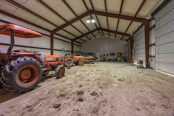 The farm headquarters building is strategically positioned overlooking the northwest section of the property. Boasting a total of 4,880 square feet, this building includes office space, an employee break room and dining hall, bathroom and shower facilities, a storage room, and 3,200 square feet of shop and equipment storage. Numerous other outbuildings, including a barn and general-purpose buildings, cater to your storage and farming needs.