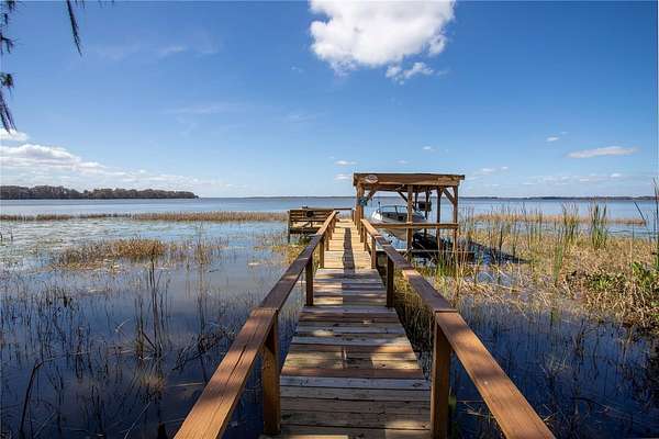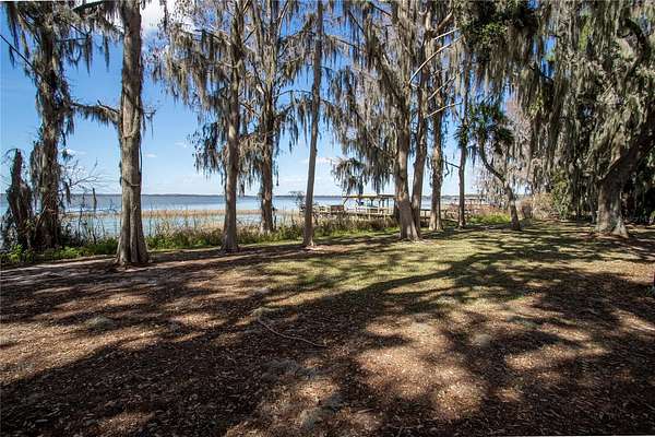 Land for Sale on Lake Harris -- the largest lake in the Chain of Lakes at 13,788 acres. This exceptional waterfront property is a premier destination for boating, watersports, and competitive bass fishing, including national fishing tournaments. Lake Harris is renowned for its largemouth bass, crappie, and bluegill, and offers endless recreation including skiing, tubing, and cruising, with multiple restaurants accessible by boat. The property consists of approximately 2.79 acres with an impressive 230 feet of direct waterfront, complete with a private dock and boat lift. Enjoy breathtaking sunsets in a quiet, peaceful setting surrounded by a bird sanctuary, providing privacy and natural beauty. An older home is currently on the property and can serve as a temporary dwelling while you build the home of your dreams. After construction, the existing structure may be removed to create the ideal space for a future swimming pool or outdoor living area.