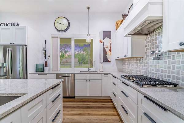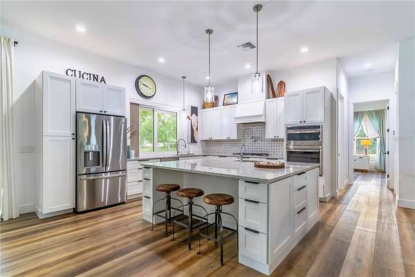 This exceptional custom estate at 31035 Pasco Rd. offers the perfect blend of quiet luxury, modern efficiency, and room to grow. Set on 3.35 private acres at the end of a picturesque 500-foot driveway lined with young white myrtles beneath majestic grandfather oaks, this property delivers both serenity and an impressive sense of arrival.