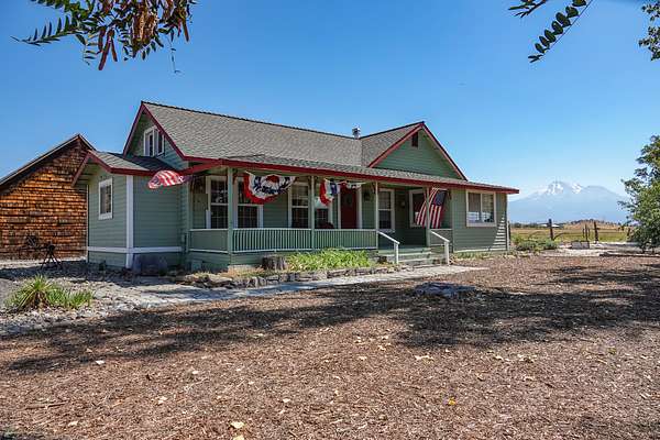 101+/- acre ranch in Little Shasta Valley in far northern California! This lovely, well maintained ranch & homestead includes a 3,024 sf remodeled main home, a 663 sf 1 bedroom cottage & a 320 sf historic log cabin. The original character of the main home has been preserved & offers a spacious kitchen with dining area & walk-in pantry, a great office nook & an updated primary suite. Various outbuildings include a detached garage with finished room & commercial refrigerators, a 23x71 garage/shop, 3 barns including a unique 3,209 sf parquet sided wood barn, plus a 16x27 greenhouse. It includes working corrals & a chute. The property has about 65 tillable acres, with the balance in hill ground & homestead. It's fenced & cross fenced, has 3 ag wells tied together with 4" mainline & has historically run about 25 spring pair year round, plus sold extra hay. It has several fruit trees & was used to grow a large commercial garden with an onsite farmstand. A year round pond is great waterfowl habitat & the views of Mt. Shasta, the Eddy's & Shasta Valley are beautiful & serene! The ranch is on a little traveled paved road, a few minutes from the small town of Montague, and approx. 25 minutes from the Siskiyou County seat of Yreka. Ask for more details & schedule your private tour!