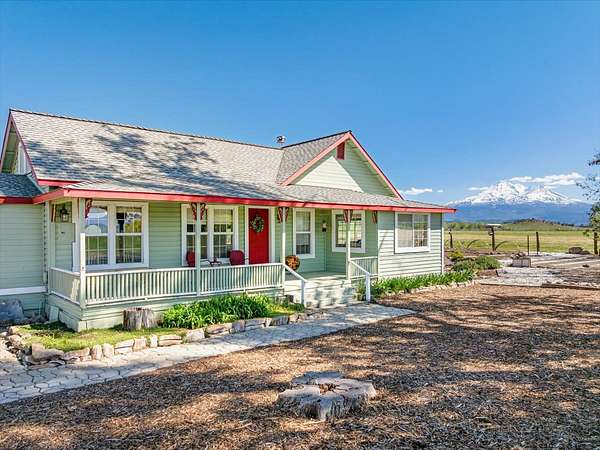 101+/- acre ranch in Little Shasta Valley in far northern California! This lovely, well-maintained ranch & homestead includes a 3,024 sf remodeled main home, a 663 sf 1-bedroom cottage & a 320 sf historic log cabin. The original character of the main home has been preserved & offers a spacious kitchen with dining area & walk-in pantry, a great office nook & an updated primary suite. Various outbuildings include a detached garage with finished room & commercial refrigerators, a 23x71 garage/shop, 3 barns, including a unique 3,209 sf parquet-sided wood barn, plus a 16x27 greenhouse. It includes working corrals & a chute. The property has about 65 tillable acres, with the balance in hill ground & homestead. It's fenced & cross fenced, has 3 ag wells tied together with 4" mainline & has historically run about 25 spring pair year round, plus sold extra hay. It has several fruit trees & was used to grow a large commercial garden with an onsite farmstand. A year-round pond is a great waterfowl habitat & the views of Mt. Shasta, the Eddys & Shasta Valley are beautiful & serene! The ranch is on a little-traveled paved road, a few minutes from the small town of Montague, and approximately 25 minutes from the Siskiyou County seat of Yreka. Ask for more details & schedule your private tour!