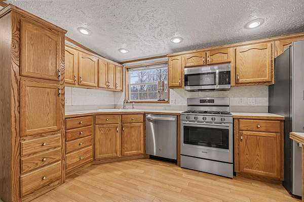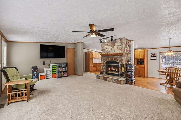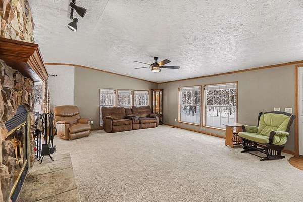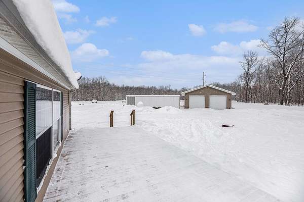 Own nearly 10 acres of land that is adjacent to federal which opens up endless options to take advantage of the great outdoors. This property is just minutes from all that Manistee has to offer. This beautifully maintained home sits back from the road in a lovely country setting. Living area is spacious and bright with lots of natural light. Fieldstone fireplace is wood-burning and is a cozy centerpiece of the living area. Eating area between the kitchen and the doors to the covered porch (27x8). Kitchen has lots of cabinets & appliances were all new over the last few years. Primary suite with a large private bathroom and walk in closet, includes a stand up shower and a garden tub. Two more bedrooms (one with a walk-in closet) plus another full bath. Laundry is conveniently located in the mud room off the back deck (12x28). Outbuilding is 26x30 and has 2 garage doors on the house side, and another garage door on the back side for a pass-through. Large work bench and lots of space.