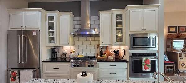 Meticulously maintained and well appointed 4 bed 3.5 bath 2,696 sq. ft. custom home situated on a 2.18 acre hilltop homesite with breathtaking vistas of the surrounding rolling topography. Located just 3 miles from Franklin, TX and less than one mile from the Franklin Ranch this property offers modern conveniences while maintaining the peace and tranquility of the rural Texas lifestyle. This home features a generously sized primary suite with en-suite bathroom and large walk-in closet. Two additional guest bedrooms also have their own en-suite bathrooms and walk in closets. The fourth bedroom could also serve as an office. Other amenities include built-in oven, commercial style gas cooktop, refrigerator, wine cooler, large walk-in pantry, marble and granite countertops, expansive kitchen island, tankless water heater, hardwood & tile floors, wood-burning fireplace, spray foam insulation and separate laundry room. The oversized back porch is perfect for al fresco dining as well as morning or evening relaxation while you take in the visually stunning surrounding countryside. Utilities are provided by Navasota Valley Electric, Robertson County Water and Leon gas. Make an appointment today and then come see why this is the home you have been searching for.