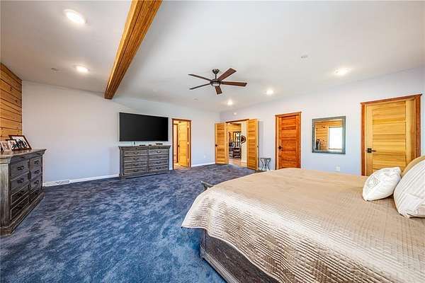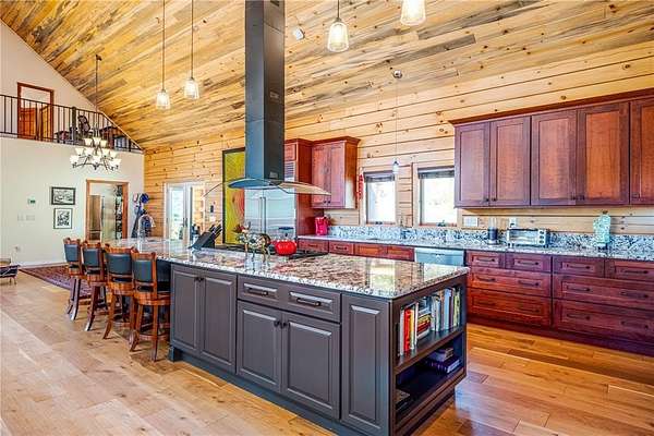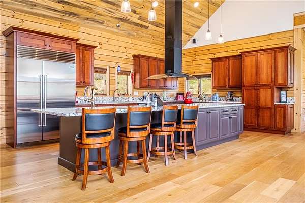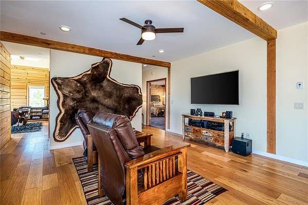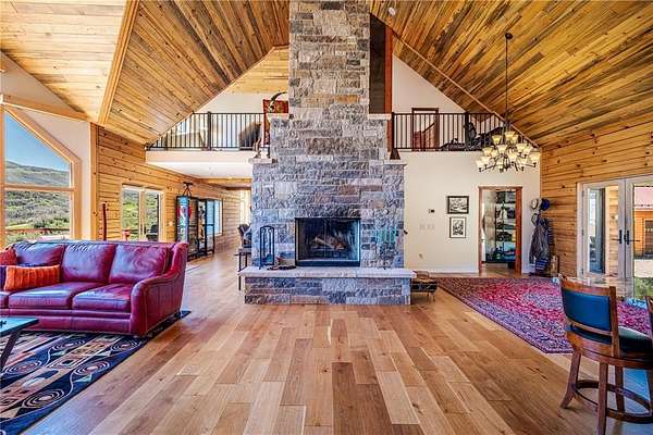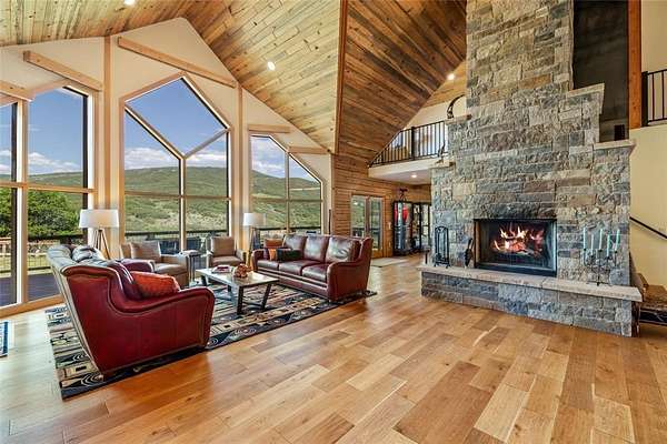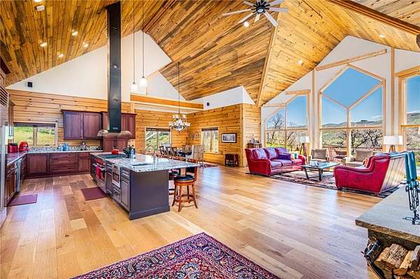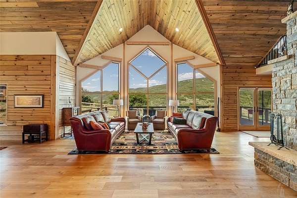 Welcome to Silver Moose Ranch, an ultra-spacious custom home boasting 35 acres in Deerwood Ranches with beautiful views of the surrounding area. You can enjoy rural living at its best yet be at the ski area base, shopping or dining in just over 15 minutes. The grand main living area is impressive with its massive stone, wood-burning fireplace, and 24+ foot ceilings adorned with tongue in groove pine creating a rustic mountain ambiance. Hardwood floors grace the room and large picture windows look out over the landscape while bringing in abundant natural light. This gourmet kitchen is a delight with plenty of granite topped work-space and large center island for multiple helping hands, 8-burner Wolf range with double ovens, SubZero refrigerator, and lots storage. Entertaining is a breeze for even large gatherings where guests can spill out onto two oversized decks and a giant rec and game room downstairs. The main level primary is luxurious offering a/c for those warm summer nights, dual walk-in closets and 2 stand-alone vanities, a deep soaking tub and steam shower. The cozy sitting area with bay windows looking out to beautiful vistas is a wonderful place for a morning coffee or an evening read. The 2 upstairs bedrooms have ensuite baths and a/c as well and at the top of the stairs are 2 lofted spaces for casual seating or a small office. In addition, there is a generous storage area, perfect for seasonal decorations or even a kid's playroom. Other enticing features of the home include an elevator to all 3 levels, 3 car detached garage, ample space for gear, equipment and toys, and a built-in observatory for the ultimate in star gazing. Whether you desire an equestrian property or just a little peace and quiet, Silver Moose Ranch is your passage to privacy and serenity.