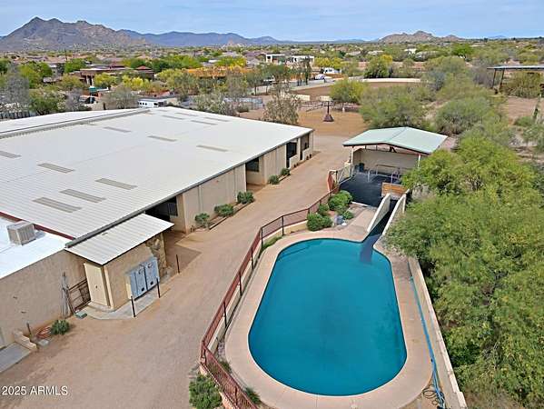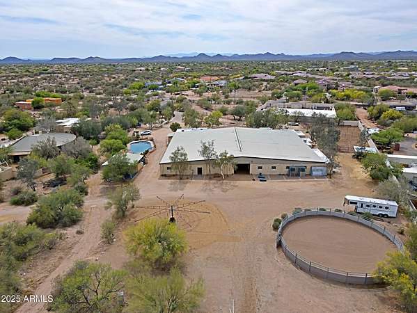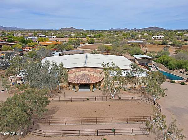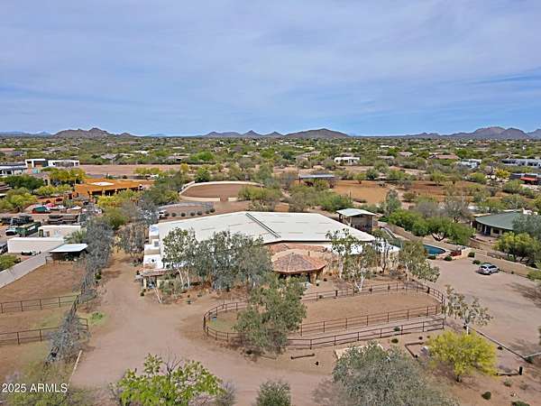 Proposed Covered Arena INCLUDED with Purchase! Amazing equine therapy, breeding, training, & rehab center in Cave Creek! This one of a kind 10-acre gem, just 15 mins from WestWorld, includes a rare equine swimming pool, a state-of-the-art vet lab, full breeding facilities, massive 220X120arena, 60''round pen, multiple turnouts, and 40+ stall barn. Water supply is bountiful with both a private well and city water. Live luxuriously in the upgraded 3,599sqft main house featuring 5 bedrooms and 5 bathrooms & a climate-controlled 4-car garage with workshop. The property also includes barn apartments, & a 600sqft guest house Offering privacy, ample storage, and unparalleled amenities, this property is perfect for establishing a thriving business! A must see! Square Footage does not include apartments, guest house and offices. Sale includes 4 parcels.