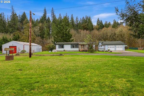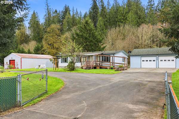 Discover 2.4 acres of the Pacific Northwest nestled up to the forest with your own personal creek out your back door. Just over 2 miles from town, this close-in 3 bedroom 2 bathroom 1,404 sqft 1999 Golden Pacific manufactured home is just what you need while enjoying a 48x30 insulated shop with 2 offices/hobby rooms wired for welding, car enthusiasts or an artist/pottery kiln -your choice! Inside your home, you'll find a well designed layout home plan, open kitchen with walk-in pantry, air-conditioning, including a spacious primary suite with a walk-in closet and private bathroom-a place to unwind and listen to the creek and nature. Bring your RV and boat to enjoy a detached 24x28 double garage, fully fenced, round 2 entrance driveway, storage galore and a chicken coop. A mere minutes to a Lewis River boat launch and the I-5 freeway 4 minutes away, home sites like this don't come along often. The country life or a perfect home business, bring your imagination. No HOA, gravity septic, 82' private well with insulated well house. Call for a personal showing today.