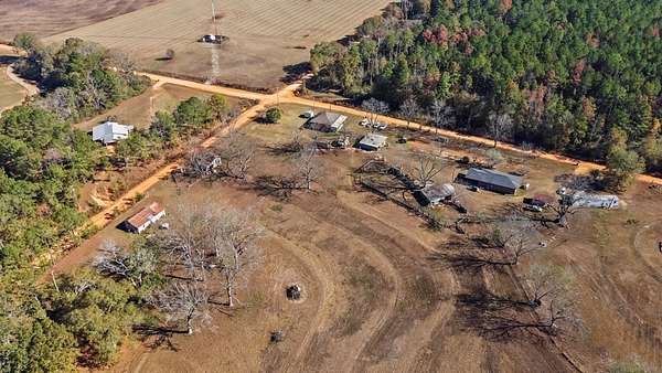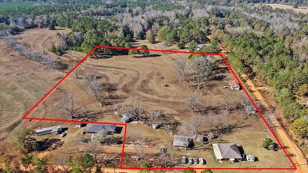 Discover peaceful country living in this beautifully maintained 1,474 sq. ft. rustic farmhouse, offering 2 BR, 2 BA, and all the charm of true Southern living. Nestled on 7.7 sprawling acres of UNRESTRICTED LAND, this property is ideal for anyone seeking space, privacy, and agricultural potential. The covered porch offers the perfect opportunity to "sit a spell" and sip sweet tea. The warm, inviting interior with natural wood accents and cozy living spaces are perfect for unwinding after a long day. The large kitchen, perfect for making biscuits with homemade preserves, has a SS refrigerator, stove and dishwasher that will convey. The craft/sitting room can easily be converted back into a bedroom to make this a 3 BR home again (closet is being used as a coffee nook). The large main bathroom w/rainfall shower creates a spa-like experience you won't want to miss. Outdoors, the land is ready for your vision to farm, homestead, or just enjoy the open space and escape from city life. The property includes multiple producing pecan trees, three barns equipped with electricity, and newly installed barbed wire fencing, making it well-suited for livestock, equipment storage, or hobby farming. New flooring has been installed throughout the house. Roof and AC are approx. 3 yrs old. Seize this rare opportunity to own your own slice of heaven on Earth!